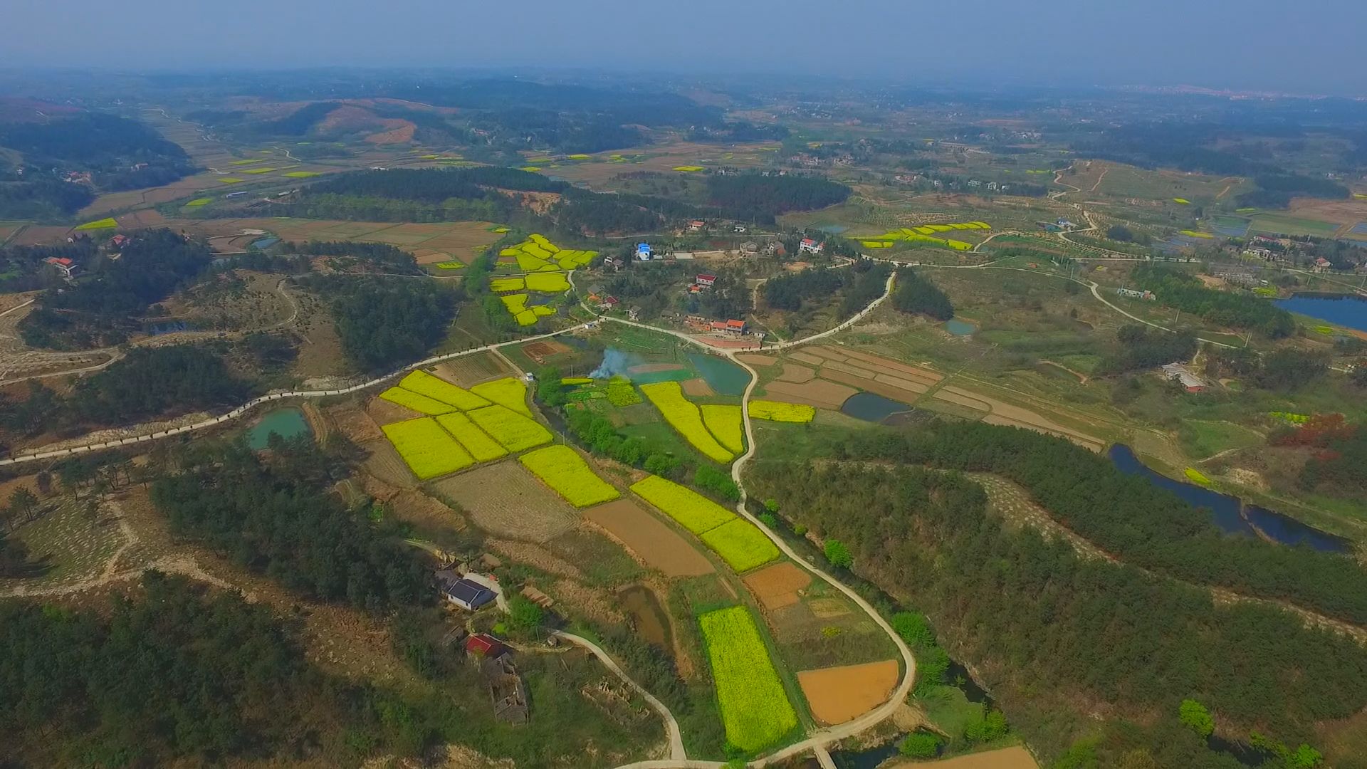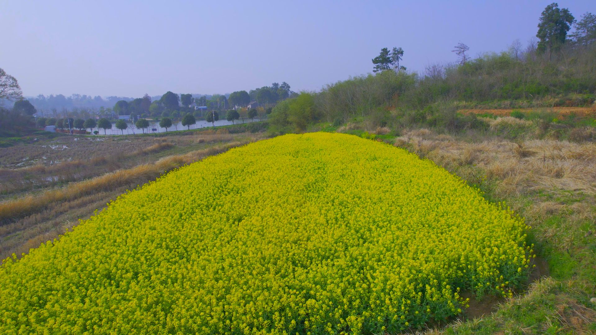 蓝天白云,阡陌小道,开阔的地面染上明快的黄色,满目明亮。微风轻拂,花香扑鼻,沁人心脾,浓郁的春日气息扑面而来,恍惚间以为自己在画中穿梭,连步伐都会变得温柔起来。