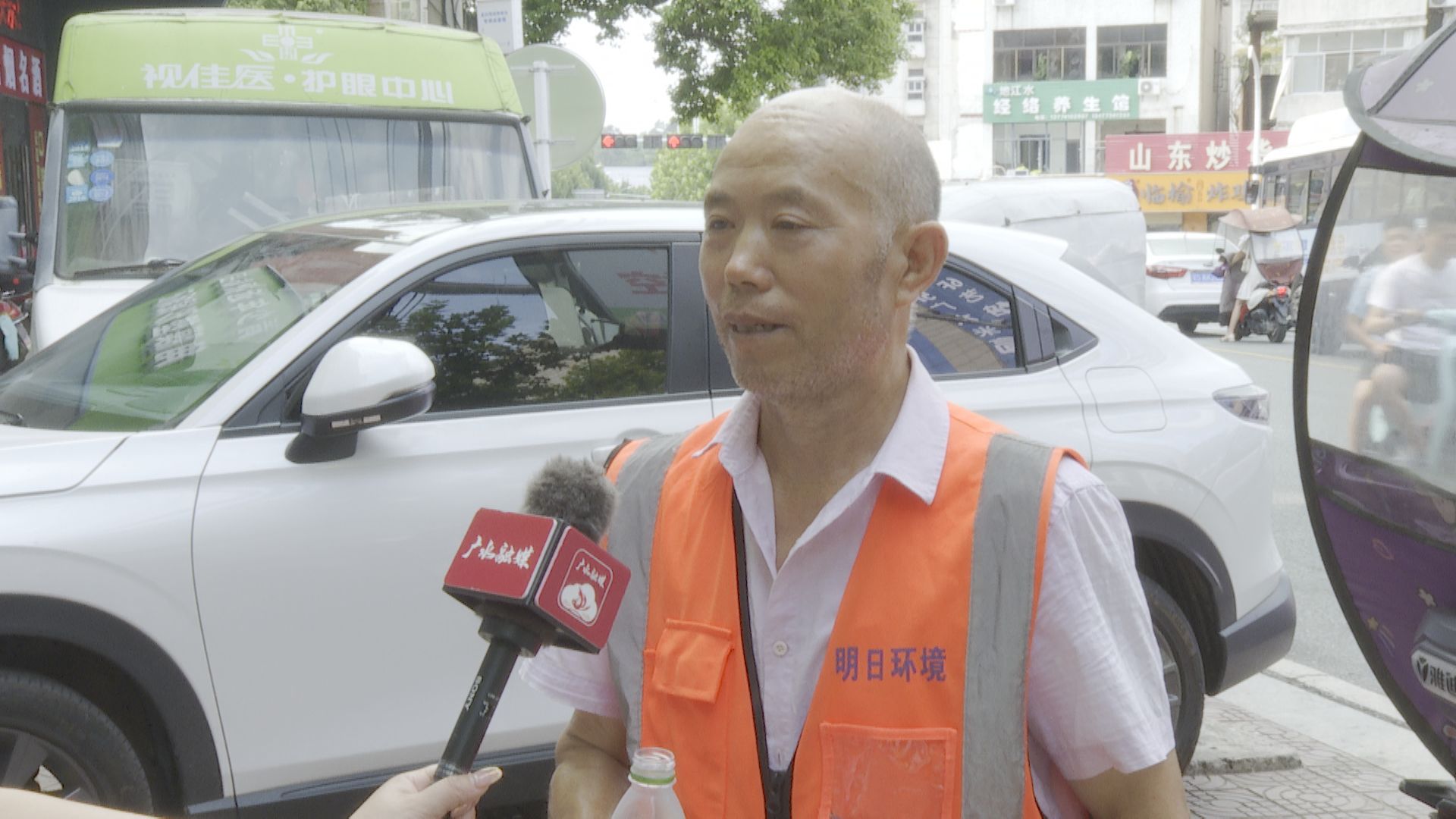 环卫工人:“这么热的天气,看到这些免费的水,除了解渴,更多的是感动。”