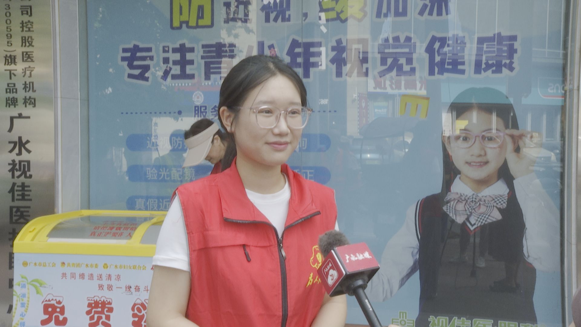 大学生志愿者 赵思瑶:“高温天气下,户外工作者很辛苦,很多人虽然看到了活动,仍选择坚守岗位。我们志愿者很细心,发现后会主动上前送水,尽可能帮助更多有需要的人。”