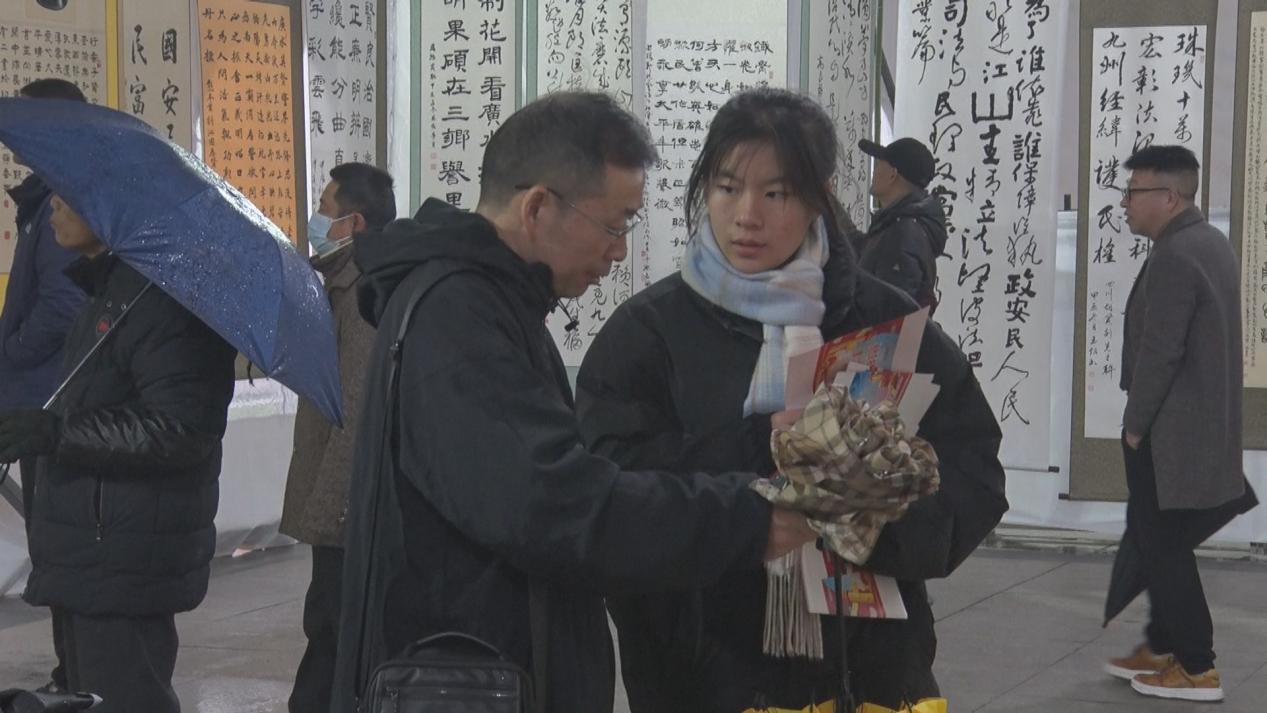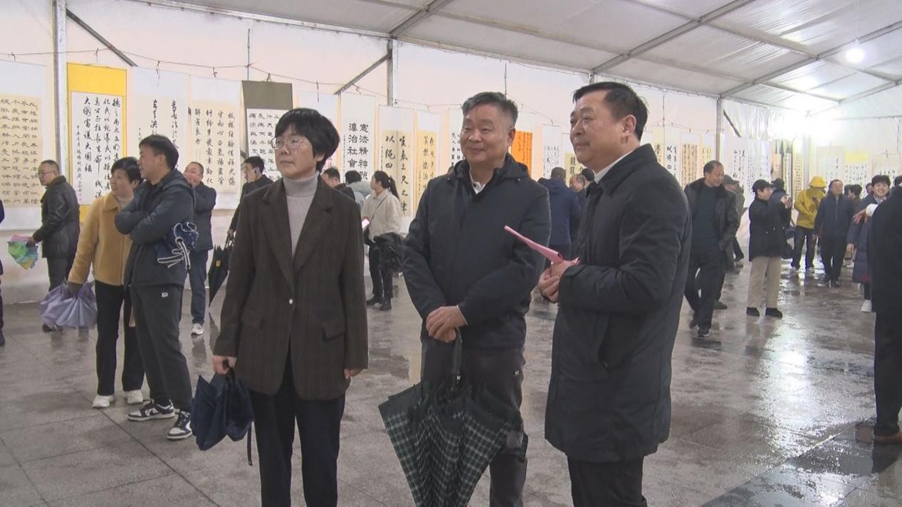 广水市老年书画研究会会长 彭先政:“我们广水是诗词、楹联、书法‘三乡’文化之乡。我们请了省书协领导,也请了全国各地的14位国家级的会员来投稿,为的是扩大影响力,把我们的档次提起来。这次活动办的非常圆满,希望我们这次的书法展,能让群众在依法治国这方面的意识增强。”