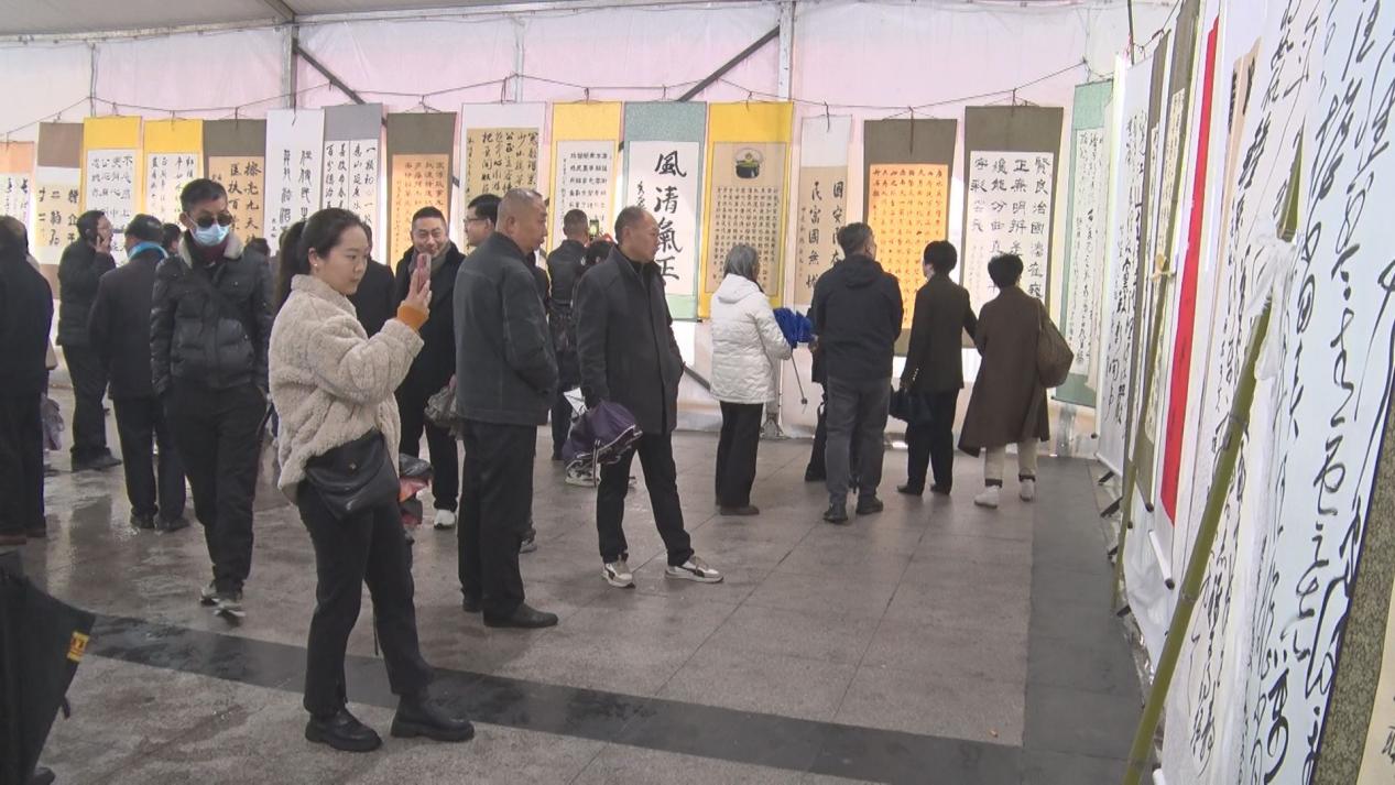 12月4日上午,我市庆祝第十一个国家宪法日暨“三乡杯”法治诗词楹联书法作品展在印台广场拉开帷幕,来自全国各地诗词楹联书法艺术爱好者的100多幅精品力作亮相书法展区,向群众宣传宪法法律,吸引了1000余名市民观看。