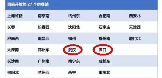 此次试点的供餐站共27个,主要是上海、天津、广州、南京、杭州、西安、沈阳、长春、武汉、济南、福州、厦门、长沙、成都、重庆、兰州等省会及计划单列市所在地高铁客运站。
