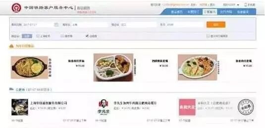 旅客下单后,列车餐车以及站内商家就会收到信息并开始配餐