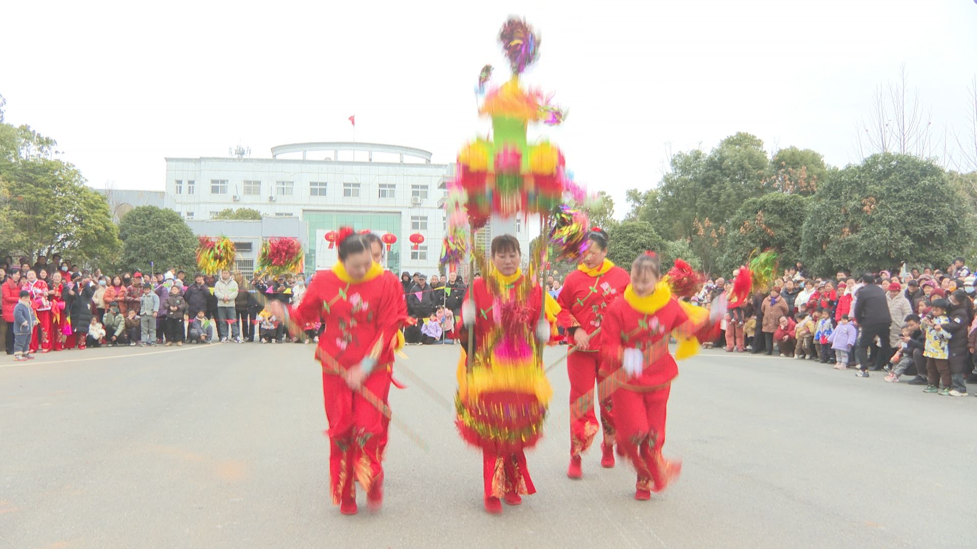 张灯结彩贺新春,欢乐腰鼓敲起来;幸福彩球漫天舞,载歌载舞庆丰收。腰鼓和彩球舞表演以欢快的节奏、灵动的舞姿烘托出祥和的节日氛围。