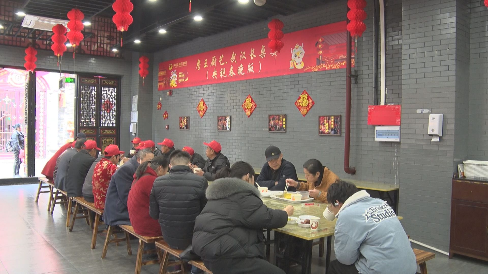 湖北陈氏詹王实业有限公司董事长陈顺刚介绍,游客在长桌宴拍照留念后,都会顺势来体验馆参观,品尝美食。春节期间,每天有2万余人来此打卡,3000余人进店消费。