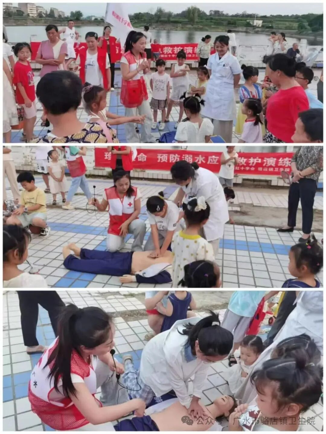 为进一步提升广大群众应对溺水突发事件的应急处置能力,普及急救知识,7月10日晚上7:00,骆店镇卫生院组织医护急救团队,在骆店镇西广场开展了一场防溺水应急救护演练活动。