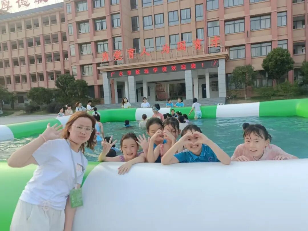 为从源头规避野外游泳风险,广水市致远学校“暑假学堂”爱心托管班专门开设游泳培训课,支教团队成员始终全程陪伴,为学生安全保驾护航。“每节课前,青年志愿者们都会逐一检查设施安全;课上紧盯每个孩子的状态,全程贴身看护,确保孩子们既能在清凉中享受运动乐趣,又能系统掌握游泳技能。”志愿者杨老师介绍道。此外,课程还巧妙融入防溺水知识问答,通过趣味游戏形式加深记忆,让安全意识在学生心中生根发芽。