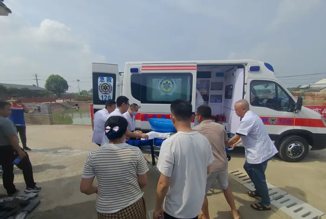 救护车抵达现场后,医护人员携带急救设备飞奔至“溺水者”身边。急救医生先确认环境安全,随即评估生命体征——发现“溺水者”意识模糊、呼吸微弱后,立即清理口鼻泥沙,实施通气及心肺复苏术;护士同步建立静脉通道,配合抢救。经过紧急施救,“溺水者”恢复自主呼吸和心跳,被平稳转移至救护车。
