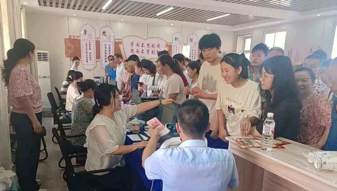 七月盛夏,骄阳似火。当前正值中考新生报名季,7月16日在市文华高中校园内人流如织,一片热闹繁忙的景象,2025年中考新生报名工作正如火如荼地进行着。为切实履行金融机构普惠责任,提升金融服务质量,广水农商银行育才路支行主动对接,提前联系,将“柜台”搬进校园全力协助学校开展新生学费收缴服务工作。