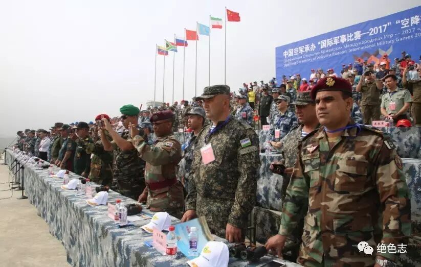 10时32分左右,随着6发绿色信号弹升空,“国际军事比赛-2017”空降排项目开幕式圆满结束。中央军委训练管理部部长黎火辉于开幕式后会见了外军参赛队领队。