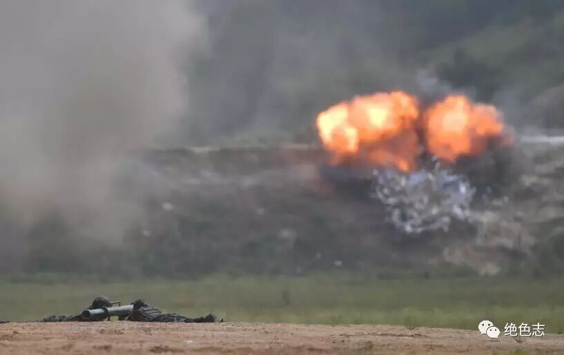 空降特战队员发射反装甲导弹摧毁目标。