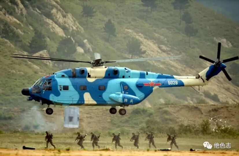 Z-8KA运输直升机,机降空降特战队员。
