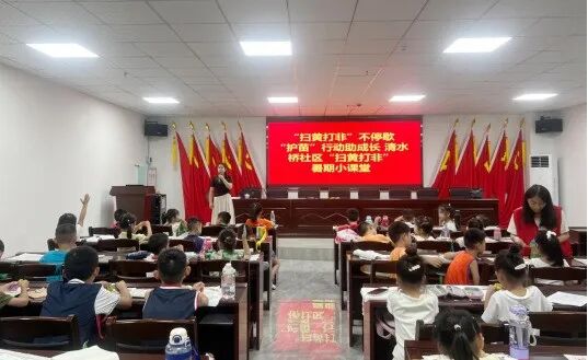 近日,十里街道清水桥社区新时代文明实践站精心组织“扫黄打非”暑期小课堂活动,旨在为孩子们丰富假期生活,筑牢思想防线。课堂上,志愿者们首先播放了生动直观地“扫黄打非”视频宣传片,随后采用“讲解+提问”的互动方式,生动形象的向学生们普及了“什么是‘扫黄打非’”“为什么要‘扫黄打非’”“如何成为‘扫黄打非’小卫士”等核心知识。活动引导学生在假期中自觉践行绿色阅读、文明上网,坚决抵制非法出版物和有害信息,切实提升自我保护能力。