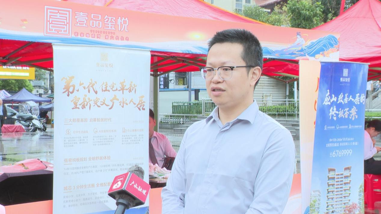 广水市某房企置业顾问 邹杰:“这次活动我们给广大购房者,带来了应山首个第6代科技住宅。它具有三大核心亮点,空中庭院、全屋AI智能系统、负公摊的设计,这些全新的改变会给购房者带来全新的居住体验。”