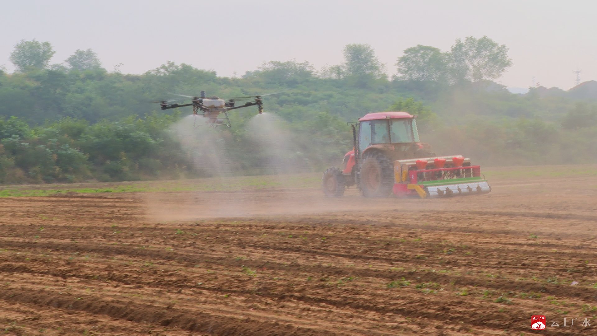 金秋时节,秋播正当时。在广水街道南站村油菜高产高效示范片现场,一辆辆播耕机在田间飞奔,高效率完成旋耕、开沟、施肥作业;植保无人机腾空而起,将雾化的药剂均匀地喷洒在土壤表面,现场一片机欢人忙的繁忙景象。