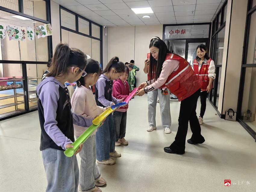 10月12日,在广水市应山街道双桥社区明亮的少年活动中心,一场趣味十足的“珠行万里”游戏正欢乐上演。