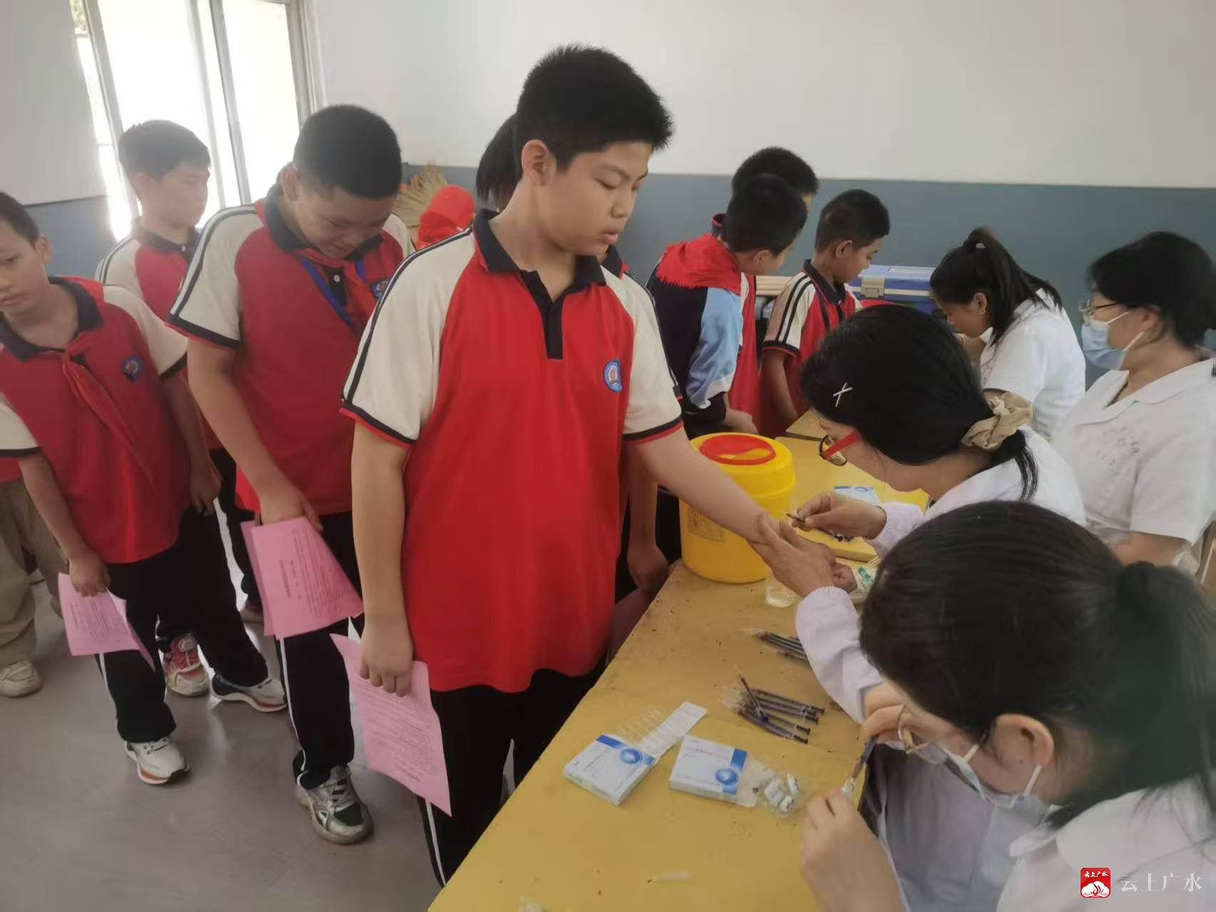 筛查现场秩序井然,医护人员严格遵循规范流程,从试剂准备、皮肤消毒到精准注射,每一步操作都细致严谨,确保筛查结果的准确性与安全性。学生们在老师的引导下,自觉排队、有序配合。同时,医护人员结合筛查工作,向学生们详细讲解了结核病的传播途径、早期症状及预防要点,并着重强调了试验后的注意事项,引导学生科学做好后续护理。