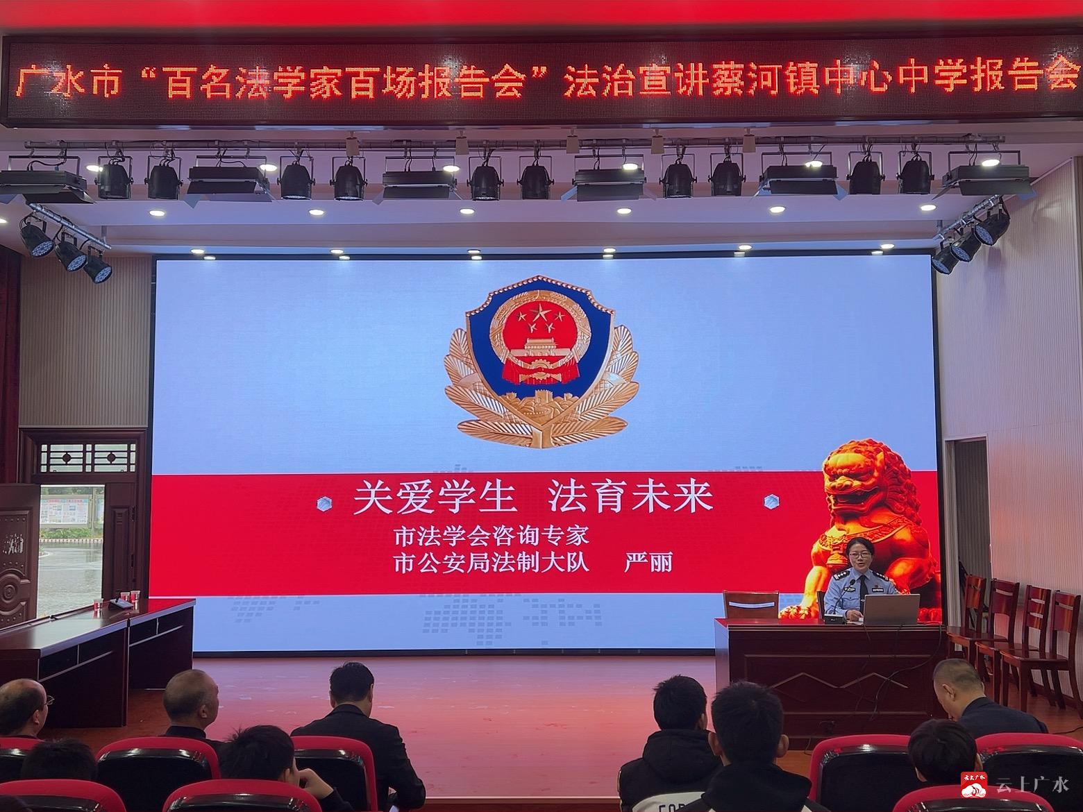 10月15日上午,广水市“百名法学家百场报告会”法治宣讲活动在蔡河镇中心中学顺利举办,为在校师生带来了一堂生动而深刻的法治教育课。