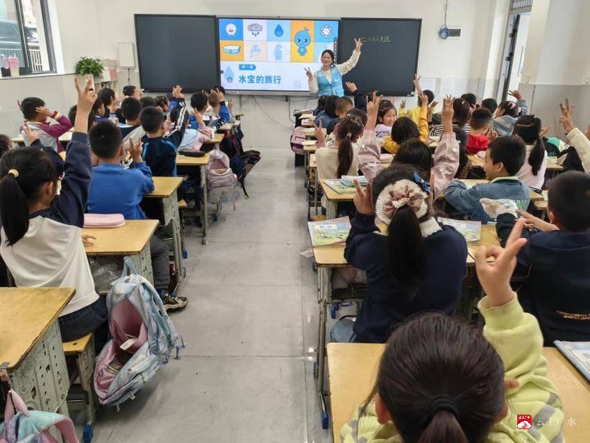 接着,义工们为孩子们带来了“水宝的旅行”的精彩课程,在动画《认识水形态和水循环》的引领下,孩子们仿佛跟着水宝一起,经历了一场惊心动魄的冒险旅程。“咕嘟咕嘟,喝干净的水”课程将孩子们的注意力引向了饮用水安全这一重要话题。动画《什么是安全的饮用水》通过生动的案例和科学的解释,让孩子们认识到了饮用水安全的重要性。而《常见的净水原理和方法》则让孩子们对净水过程有了更深入的了解。在互动环节,孩子们纷纷举手发言,分享自己对水的理解和感受,整个教室充满了欢声笑语。并现场为每个孩子发放水杯一个。