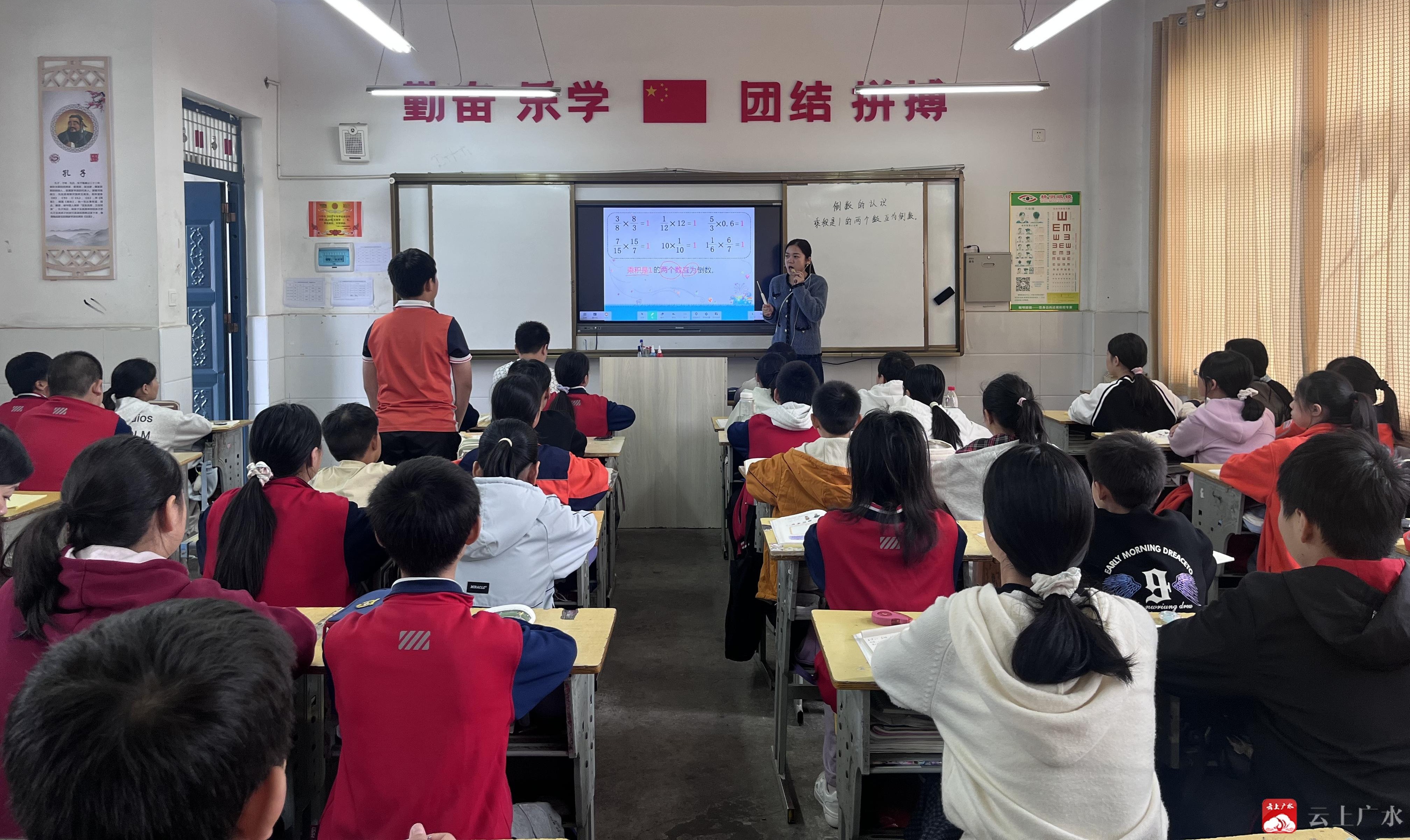 活动中,杜老师以《倒数的认识》为课题进行授课。她从“互为朋友”的生活概念切入,通过举例、观察、验证等环节,引导学生自主发现“乘积是1的两个数互为倒数”的核心定义,同时结合趣味习题突破“0没有倒数”“1的倒数是它本身”等难点。全体数学教师全程专注听课,细致记录教学环节设计与学生反馈。课后研讨环节,老师们围绕“如何将抽象概念具象化”展开热烈交流,既肯定了生活情境导入的优势,也提出了增加小组探究任务的优化建议。