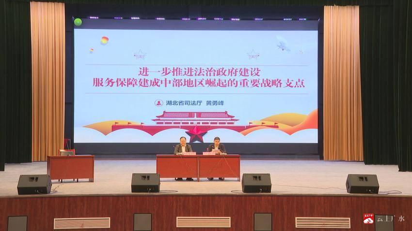 本次“政法讲堂”邀请湖北省司法厅法治调研处处长、一级调研员黄勇峰作专题辅导。黄勇峰以《进一步推进法治政府建设 服务保障建成中部地区崛起的重要战略支点》为题,从推进法治政府建设的重要意义、新时代湖北法治政府建设进展、支点建设中法治政府建设的主要任务与基本要求,以及党员干部需以“五个意识”砥砺担当等五个方面,为参加学习的政法干警作了深入浅出、生动细致地讲解。