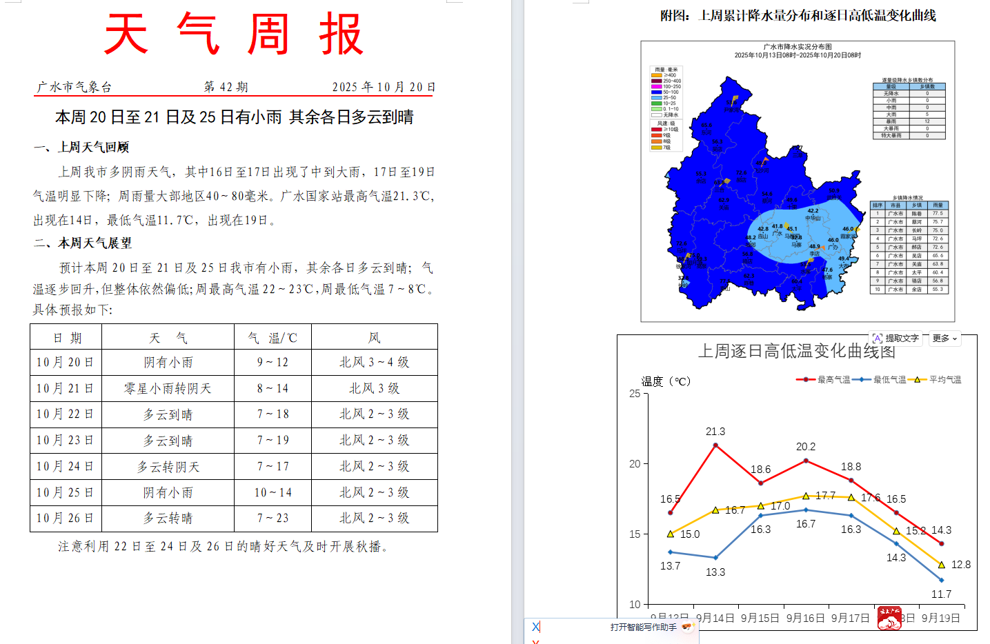 本周以多云到晴天气为主 偶有零星小雨