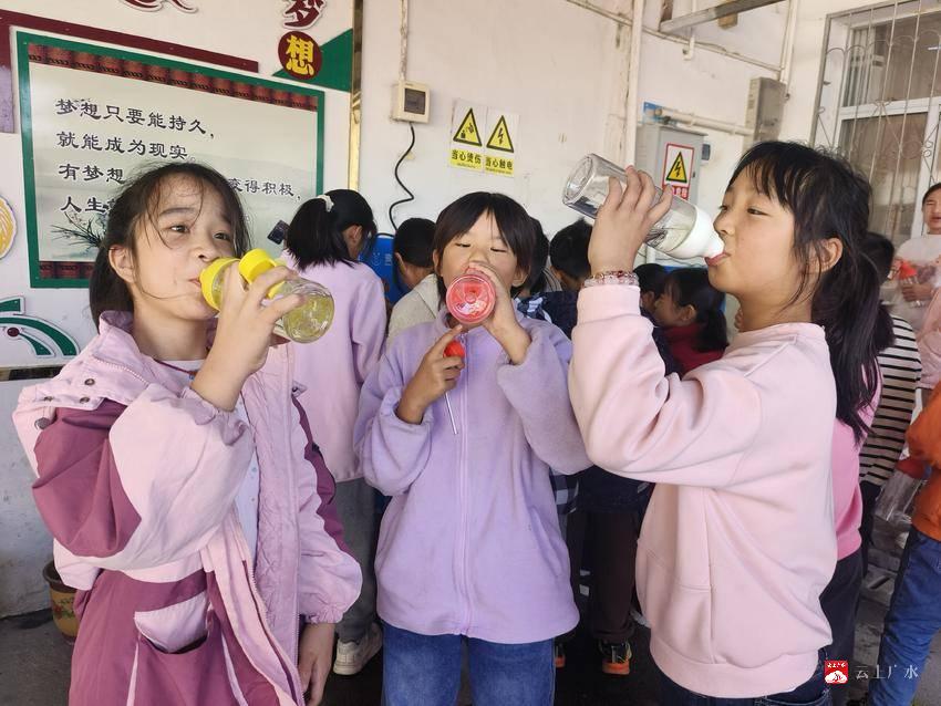 “干净的水,干净的心,感谢壹基金!干净的水,有点甜,感谢义工联!”孩子们的参与热情高涨,他们竞相展示自己良好的饮水习惯,有的拿起水杯,优雅地小口品尝;有的则干脆直接捧起水杯,畅快地饮下甘甜的清水,每个动作都透露出对健康饮水的热爱与坚持。