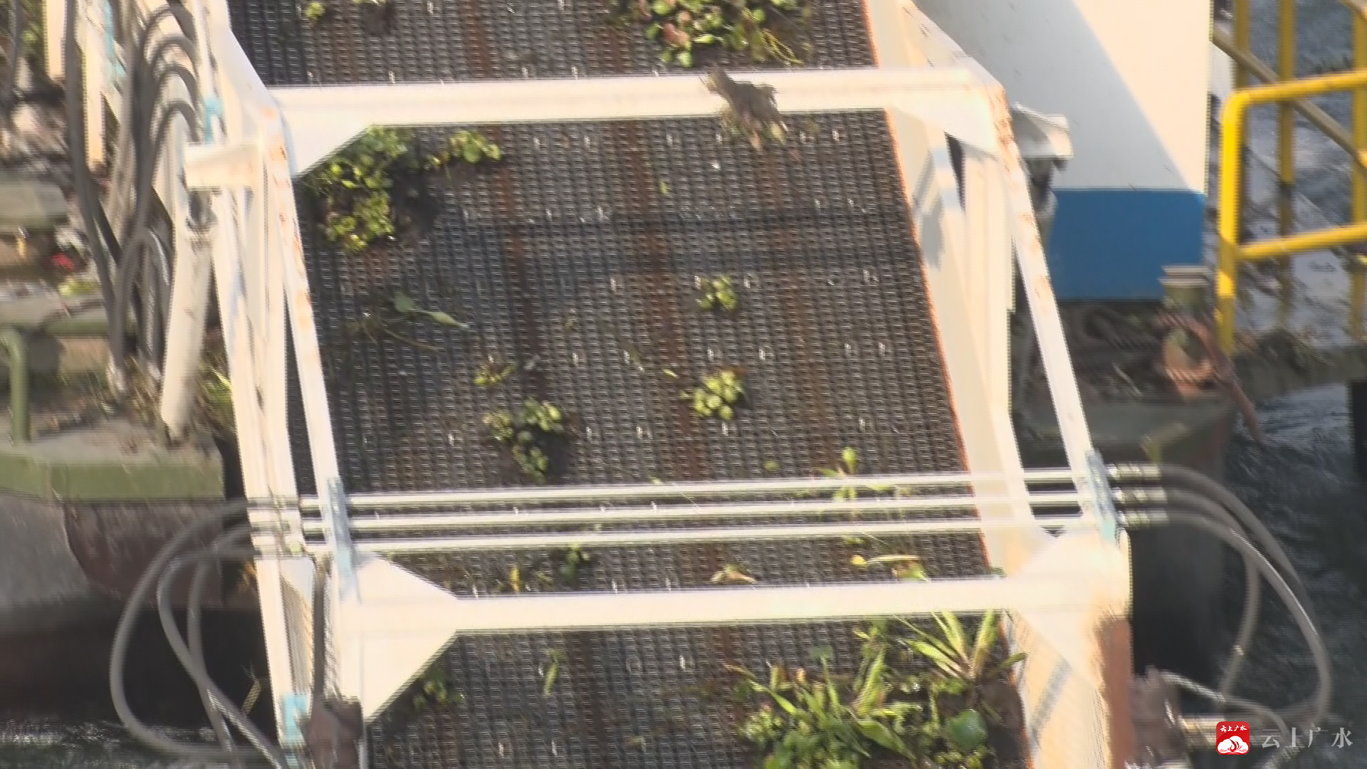 城管作业人员驾驶全自动打捞船,清除漂浮在河面上的水葫芦。这些专门采购的打捞船功率大、马力足,一次能“吞”进5吨的水葫芦,清漂效果明显。