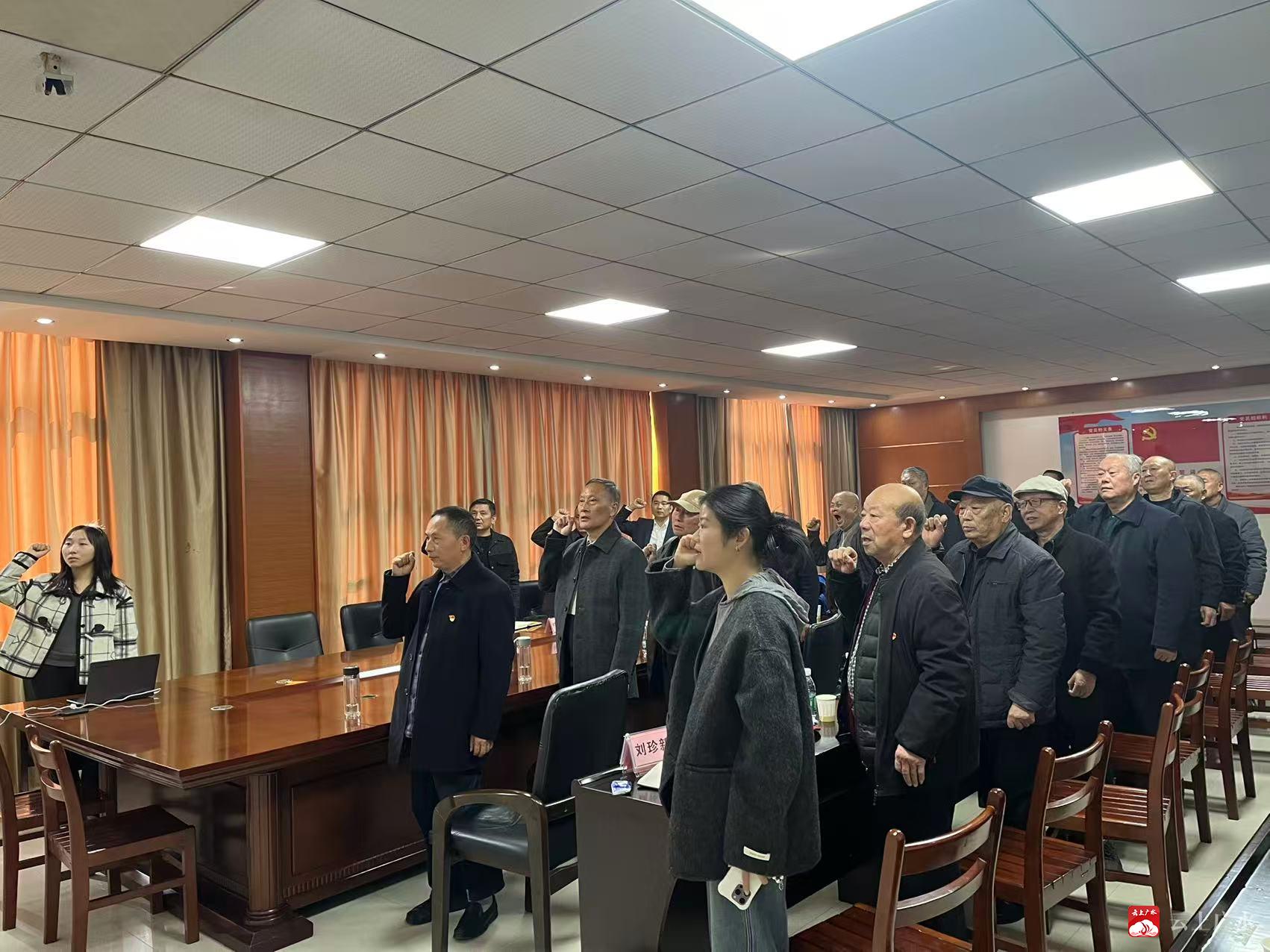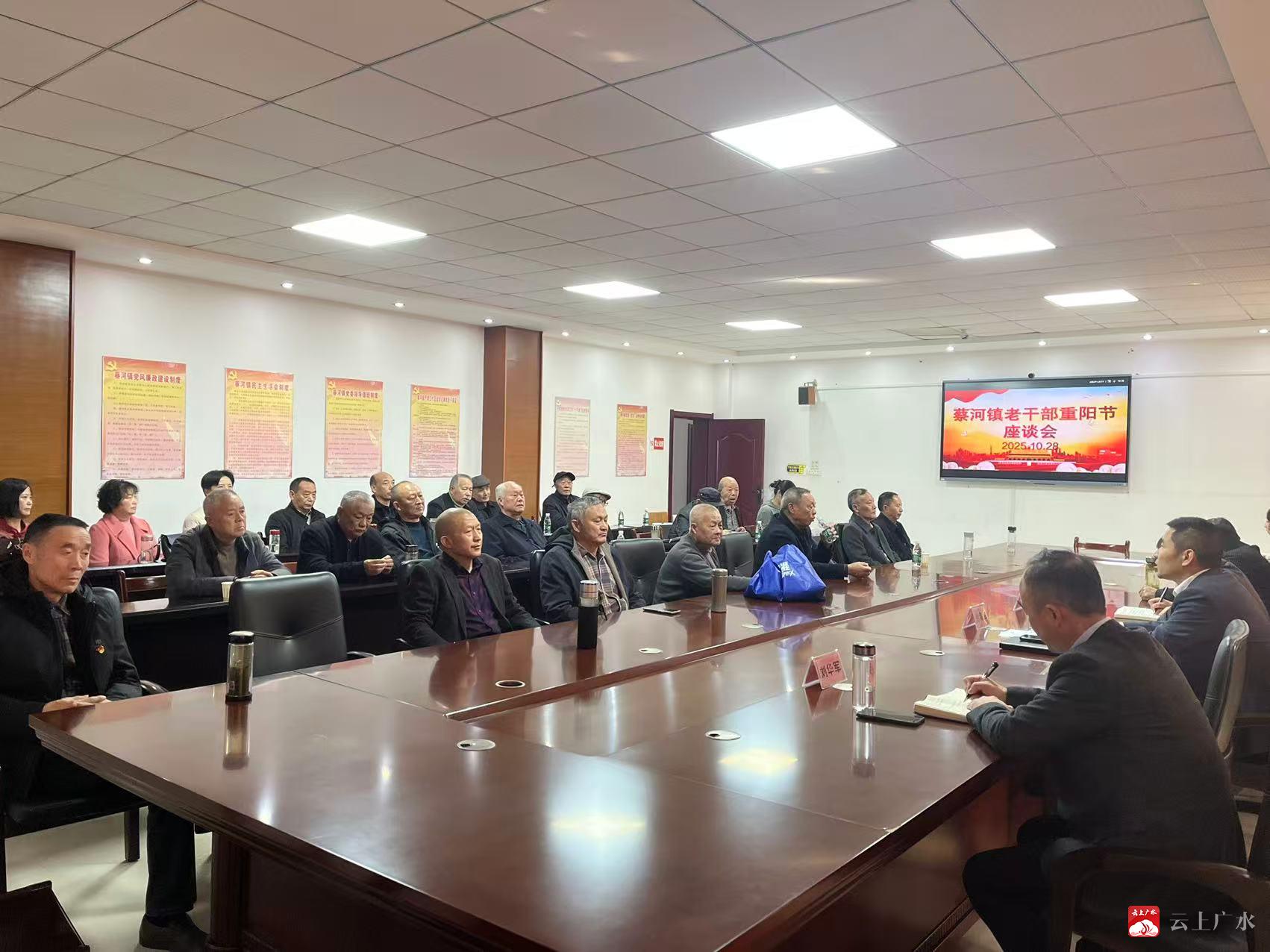 观摩结束后,老干部支部主题党日活动暨重阳节座谈会在镇政府317会议室召开。活动中,老干部们佩戴党员徽章、缴纳党费,在镇党建办负责人带领下重温入党誓词,铿锵誓言回荡会场。镇长通报了全镇年度工作情况,用翔实的数据展现了产业培育、民生保障、乡村振兴等方面的成效。座谈交流时,老干部们结合观摩见闻忆往昔、谈感受、提建议,“家乡发展日新月异,我们打心底自豪”“年轻干部要接续奋斗,把蔡河建设得更美好”,字里行间满是对家乡的牵挂与期许。