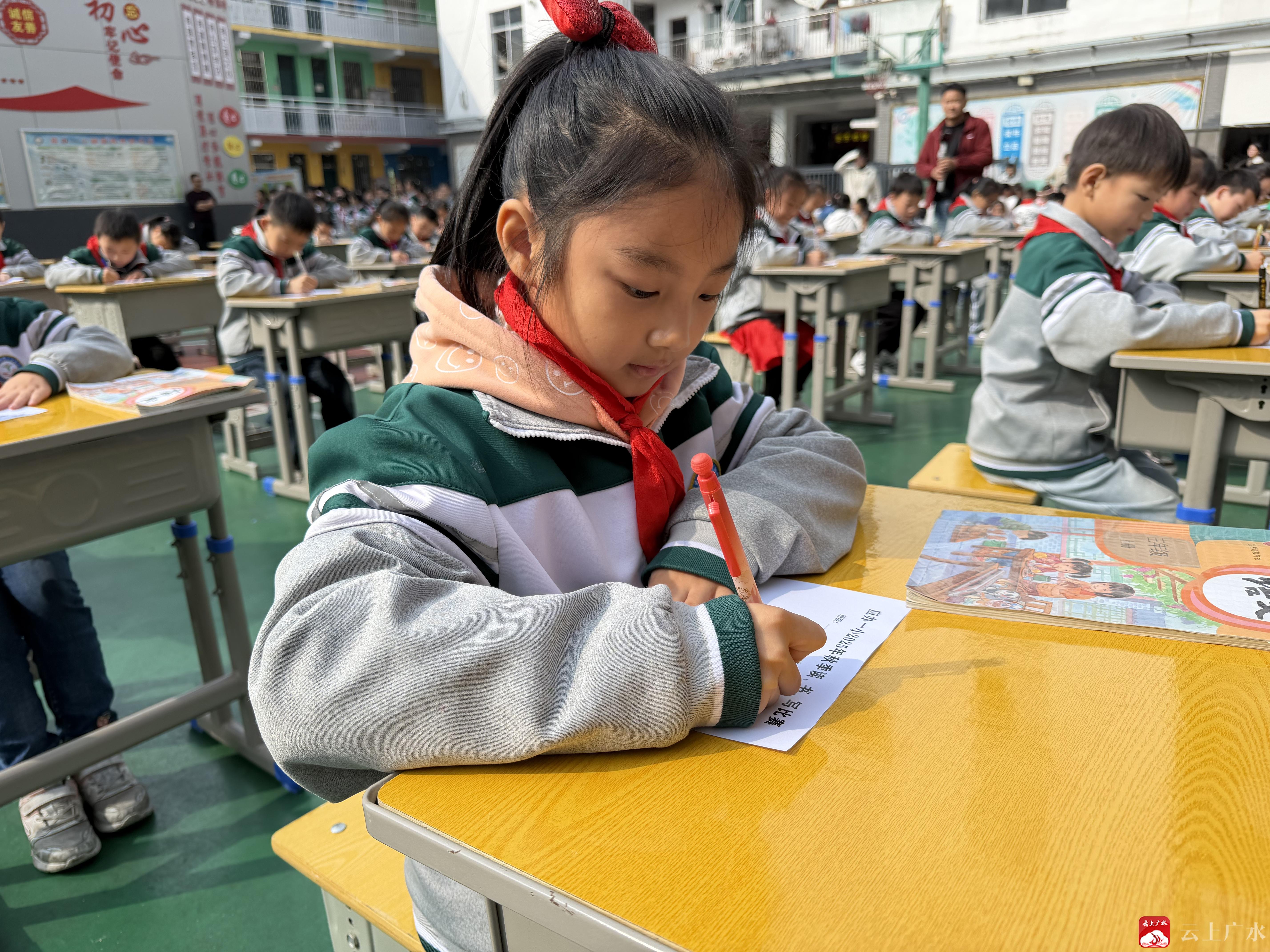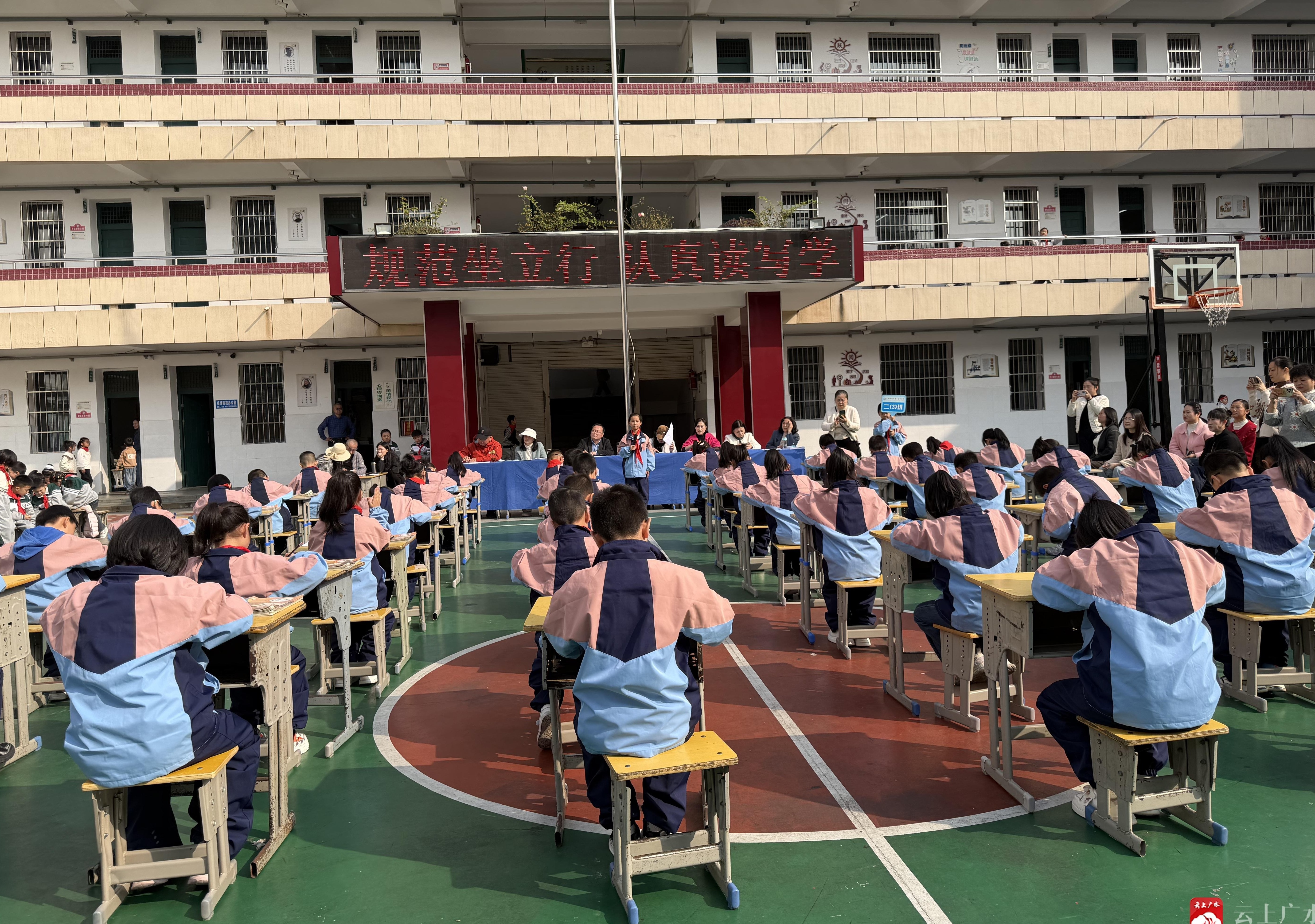展示活动中,学生们坐姿端正,轻扶课本,琅琅的读书声洋溢在比赛现场。他们神情专注,仿佛沉浸在知识的海洋中。写字时,“三个一”牢记心间,手离笔尖一寸、身离桌子一拳、眼离桌面一尺。他们握笔正确,书写规范,虽然笔锋略显稚嫩,但每一笔每一划都一丝不苟,整体书写效果工整美观,令人赏心悦目。展示结束后,学生有序地将书本、学习用品收拾好,轻轻将椅子推送至桌子下方,收拾垃圾,列队退场,做到了“快、静、齐”。
