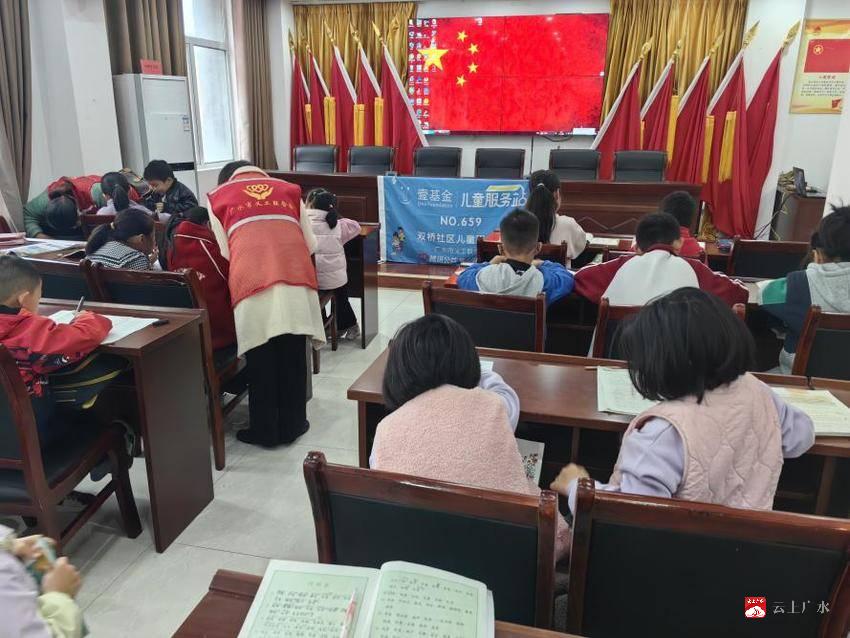活动前,孩子们在义工们的精心辅导下,完成了周末作业。(通讯员程开军)