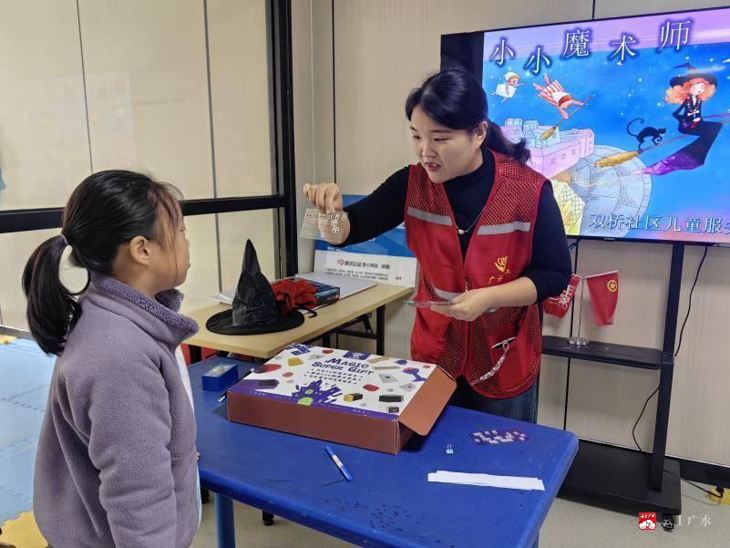 魔术是以不断变化的形式、富有神秘感的氛围并带给观众惊奇体验为核心的一种表演艺术。11月8日,广水市委社工部、市民政局、市教育局、市关工委、市总工会、市文明办、团市委、市妇联、市未保中心、应山街道双桥社区、市义工联、市广益社工中心联合在双桥社区儿童服务站开展“科学魔法秀•快乐嗨不停”体验科学乐趣活动,孩子们挥起魔术棒、装满欢笑声、鼓足勇气值,感受魔术的神奇。