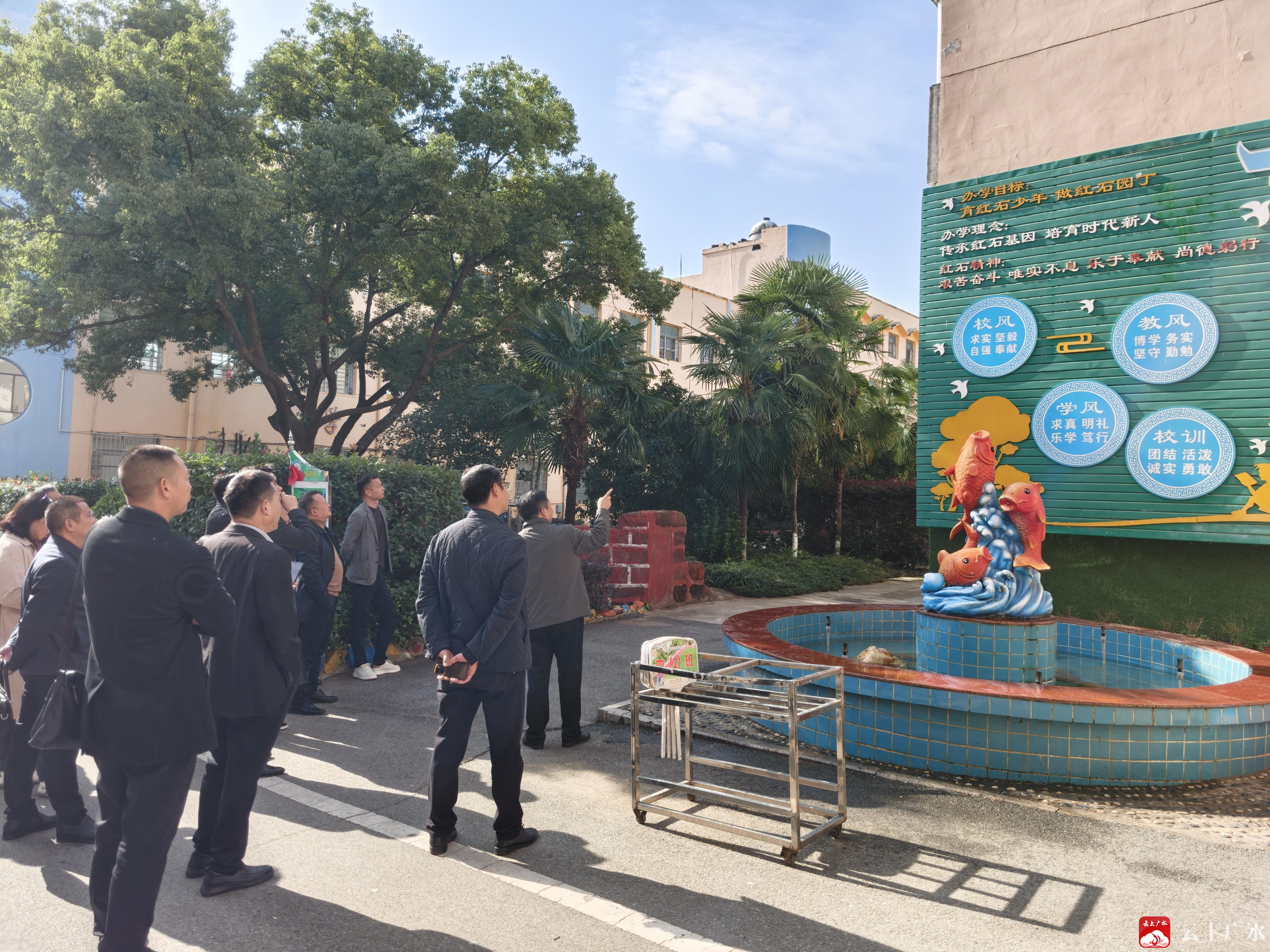 参观教师团来到李店镇中心小学参观校园文化。李店镇中心小学对参观团的到来表示热烈欢迎,学校相关负责人化身“校园向导”,为来访教师开启了一场“行走的校园解读”,详细介绍了学校的“红石文化”。从学校的来历、校风校训到各栋教学楼的命名寓意及功能,从李锡硅雕像到红石佳园的背后的故事,每一处建筑都是会说话的教育载体。在参观中交流文化建设,来访教师频频驻足探讨并拿起手机记录,对“红石”教育大加赞赏。