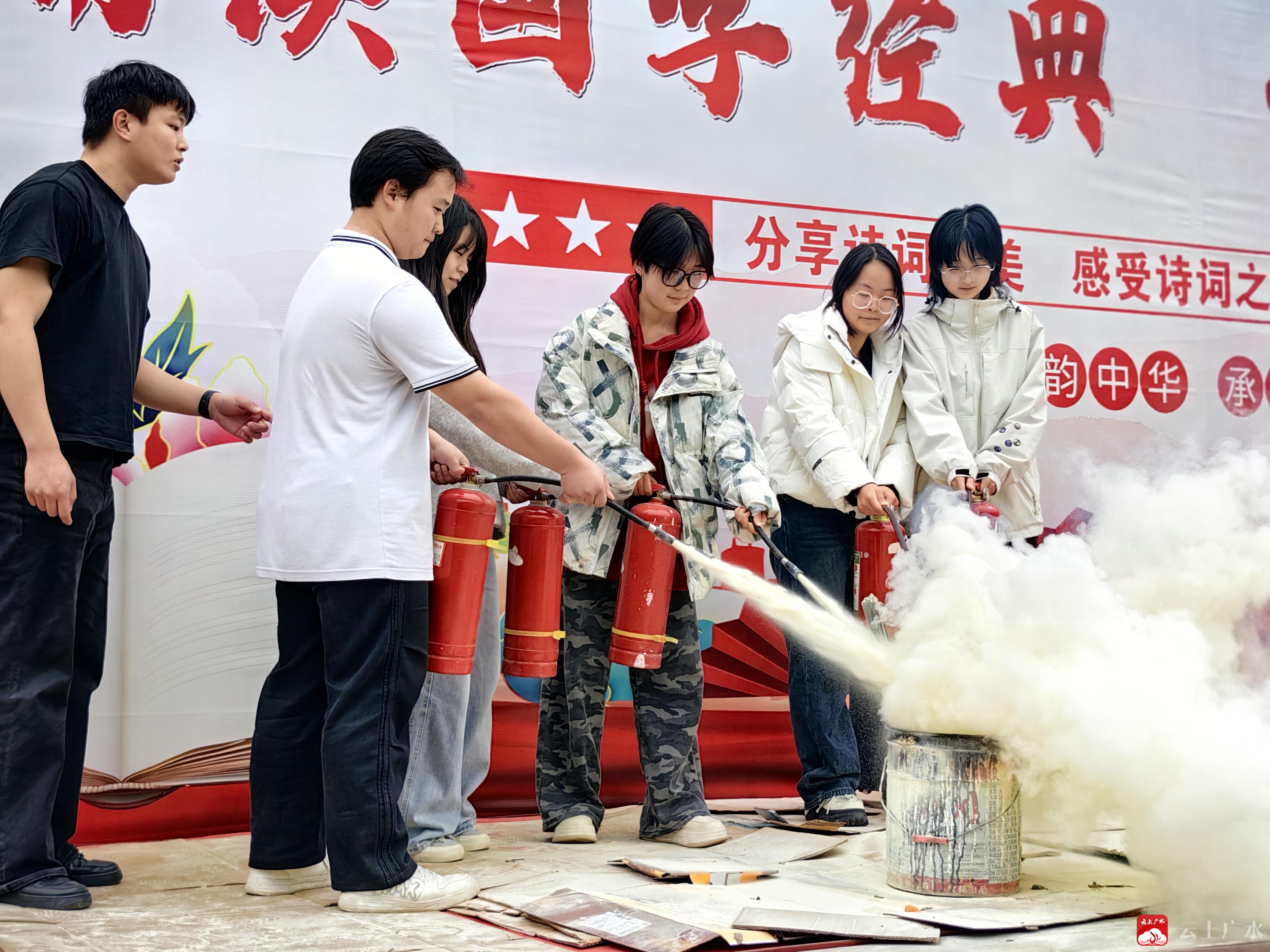 实操实练,提升应急技能。在安全集结区域,学校安全员为师生们带来了一场生动实用的灭火知识宣传活动。安全员首先详细讲解了日常生活中常见的火灾隐患、预防措施以及不同类型火灾的扑救方法,重点介绍了干粉灭火器的正确使用步骤——“提、拔、握、压”。在随后的实操环节,学生代表在安全员的专业指导下,亲自上阵,对准模拟火源进行灭火演练。通过亲手操作,大家成功掌握了灭火器的使用方法,有效提升了扑灭初期火灾的实战能力。