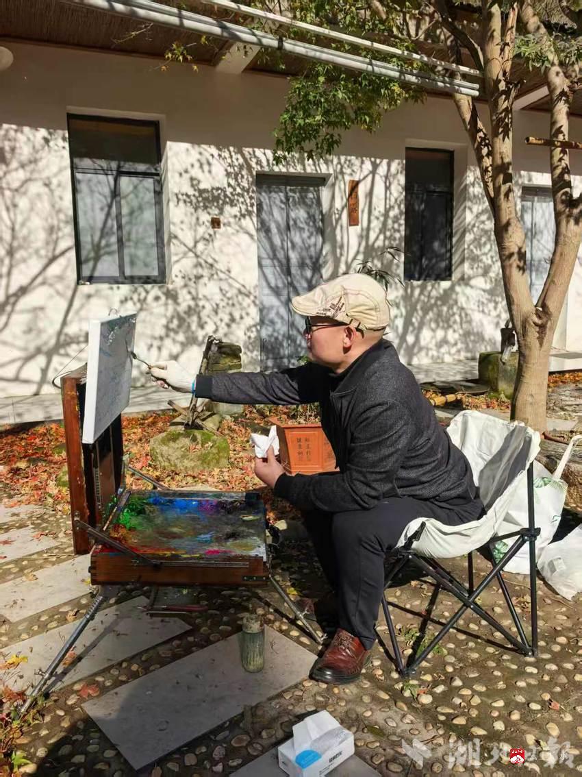 古寺为卷,笔墨传情。活动现场,画家们以秋日景色、千年银杏、静谧村落为背景,沉浸于千年古刹所独有的历史氛围与自然意境之中。他们凝神聚意,挥毫泼墨,以细腻的笔触,用丰富的色彩点染秋叶与村庄的斑驳光影,力求在方寸画纸间,捕捉古寺的岁月痕迹。艺术与古韵在此交汇,一幅幅生动的画卷徐徐铺展,生动再现了广水重要文化遗产的独特魅力。