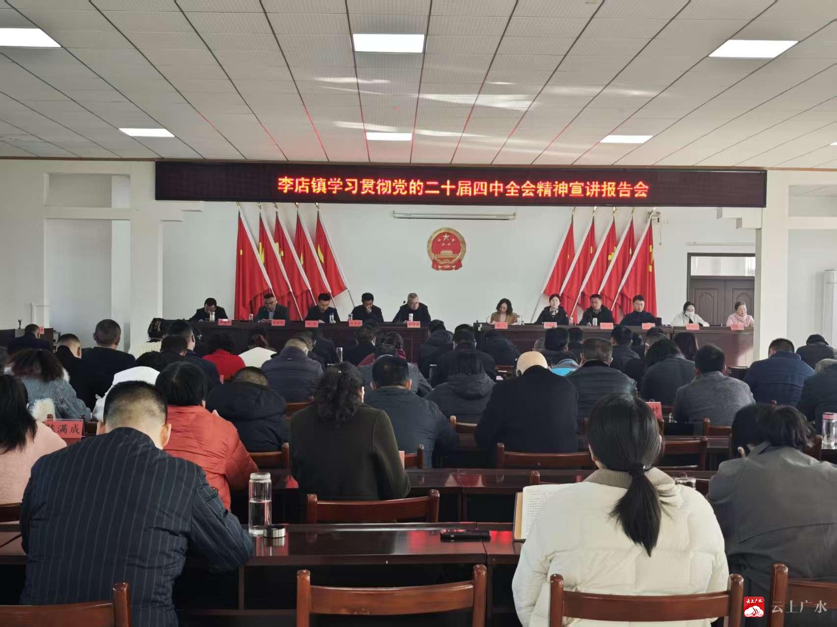 为深入学习领会、全面准确把握党的二十届四中全会的重大意义、精神实质和实践要求,引导全镇广大党员干部群众把思想和行动统一到全会精神上来,11月30日,李店镇隆重召开学习贯彻党的二十届四中全会精神宣讲报告会。镇党政领导班子成员、机关全体干部职工、各村(社区)党组织书记、主任、镇直单位负责人等参加了报告会。