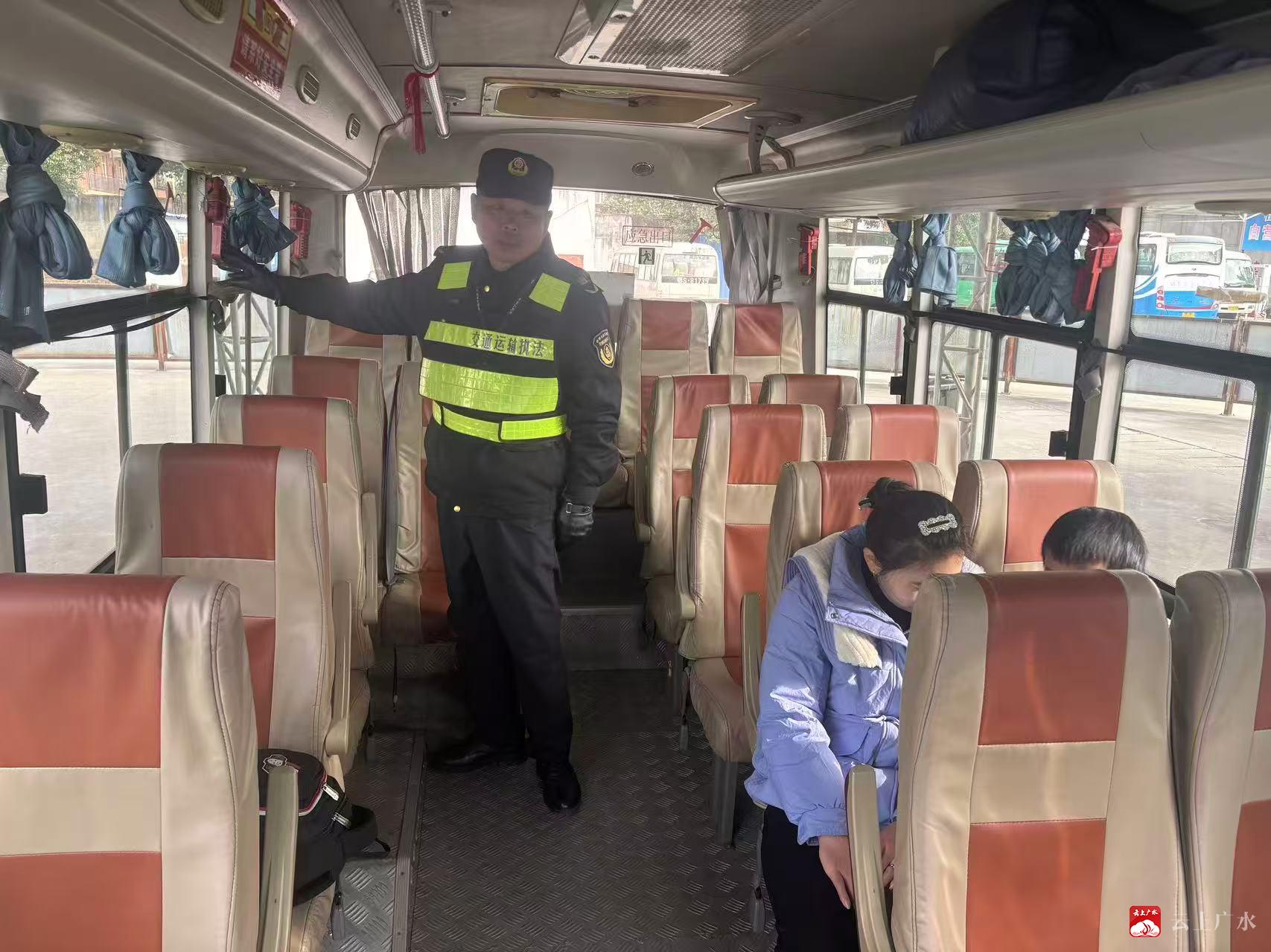 岁末年初临近,交通运输迎来客流高峰。为保障群众出行安全,广水市交通运输综合执法大队近日全面启动交通安全专项检查行动,聚焦客运站场、重点路段,对营运车辆实施严格检查,切实筑牢道路交通安全防线。