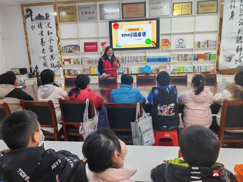 随后,分组比赛版emoji猜成语游戏点燃全场热情。孩子们被分为4个小组,义工老师在大屏幕上展示由表情符号组成的成语谜题,“太阳+山脉+士兵+回家”“星星+月亮+笑脸+双手”等趣味组合接连亮相。各小组成员围坐讨论,争先恐后举手抢答,答对得分、答错扣分的规则让现场氛围既紧张又欢乐,大家在竞技中领略了汉字文化的妙趣。