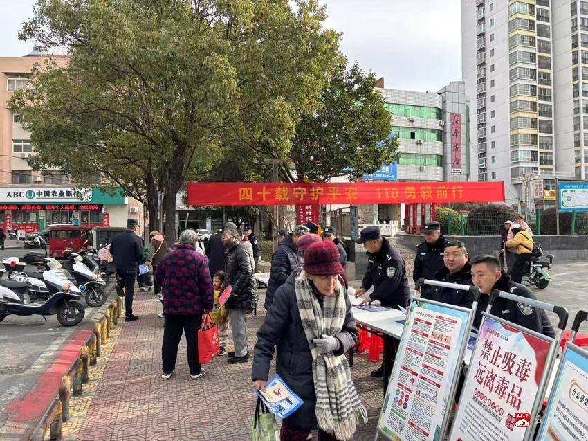 1月10日上午,广水派出所联合广水街道办事处社区戒毒康复中心、各社区干部在中山广场举办“警民同心·无毒同行”——第6个中国人民警察节暨全国第40个“110宣传日”集中宣传活动。街道干部、社区群众、商户等百余人现场参与,共同向“藏蓝”守护力量致敬。