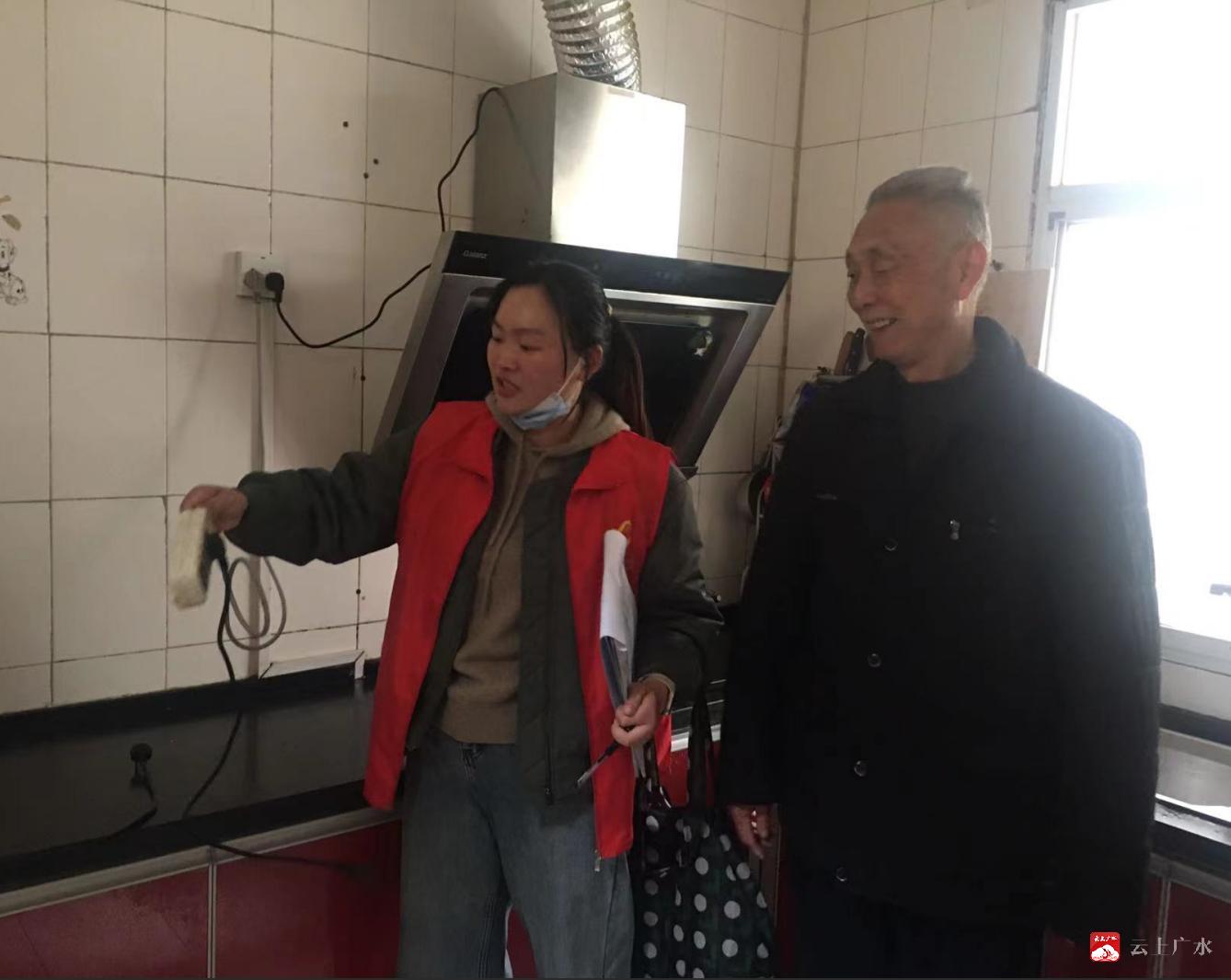 在高龄独居老人家中,社区工作人员仔细检查用电、用煤、用气情况,讲解一氧化碳防范知识,增强群众安全意识。