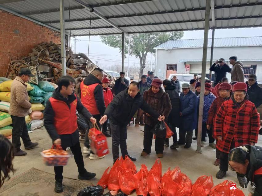 慰问现场,活动广场上一箱箱新鲜水果、一袋袋生鲜鱼肉摆放得整整齐齐,处处洋溢着温馨的节日氛围。月日塘村新时代文明实践站志愿服务队的志愿者们化身“暖心使者”,一边为村民递上慰问礼品、送上新春问候,一边耐心普及冬日防火、用电等安全知识,将关怀与安心送到村民心坎上。