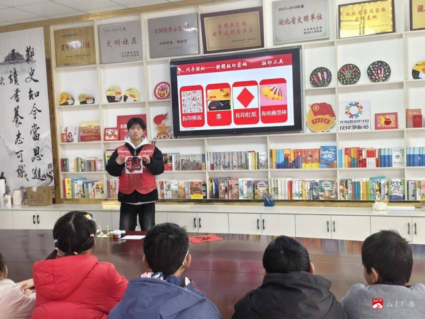 福马启新程,拓印传古韵。2月7日,共青团广水市委、广水市义工联合会联合在应山街道东关社区“共青团伙伴计划·伙伴领航站”开展“福暖迎新春•非遗润童心”非遗拓印体验活动,返乡大学生志愿者和少年儿童齐聚一堂,在动手实践中感受民俗技艺的魅力,让传统文化在欢声笑语中薪火相传。
