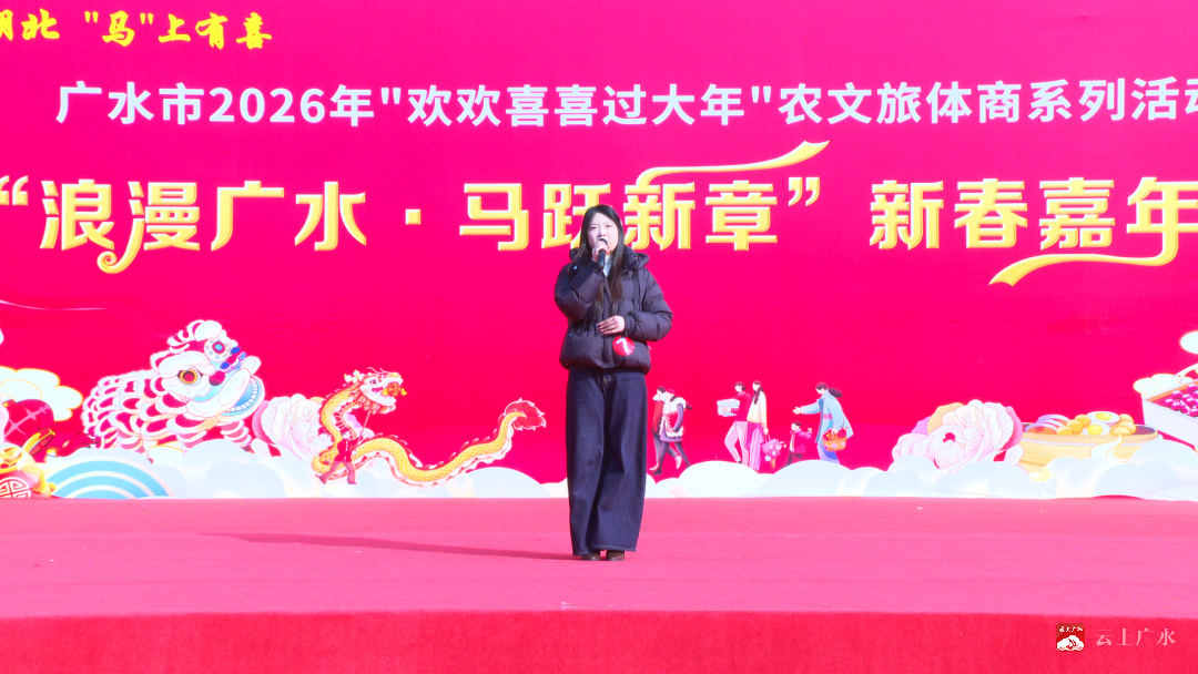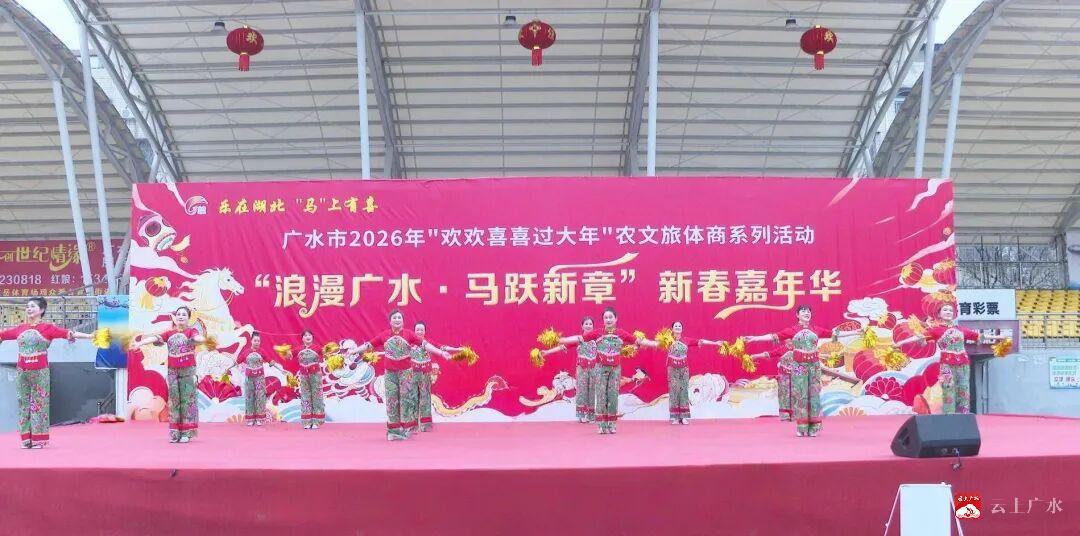 浪漫广水,马跃新章。为营造喜庆祥和的节日氛围,丰富人民群众的精神文化生活,2026年春节期间,广水市精心策划并成功举办了以“欢欢喜喜过大年”为主题的农文旅体商系列惠民活动。活动涵盖文艺演出、青年赛事、民俗非遗、房产展销等多个领域,为广大市民和游客奉献了一场场年味浓郁、精彩纷呈的文化盛宴,全面展现广水城市活力与文化魅力。