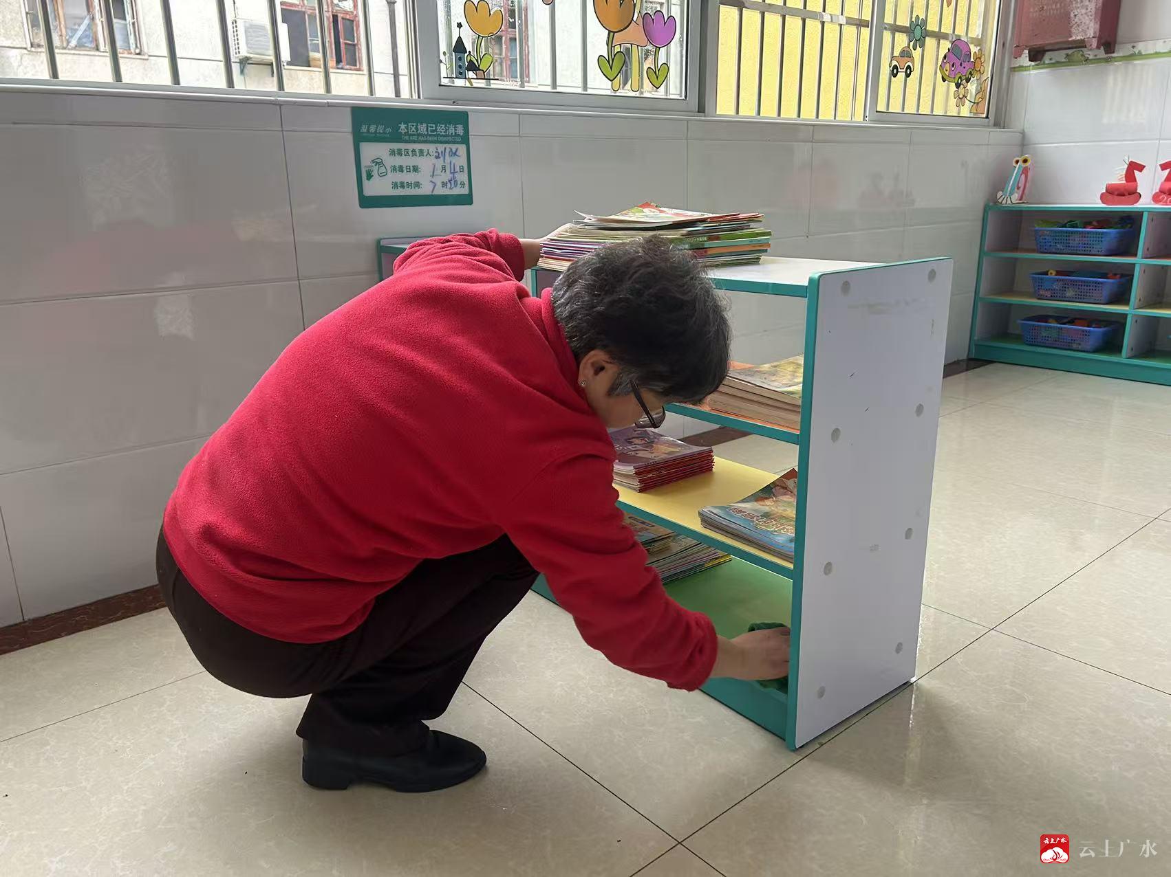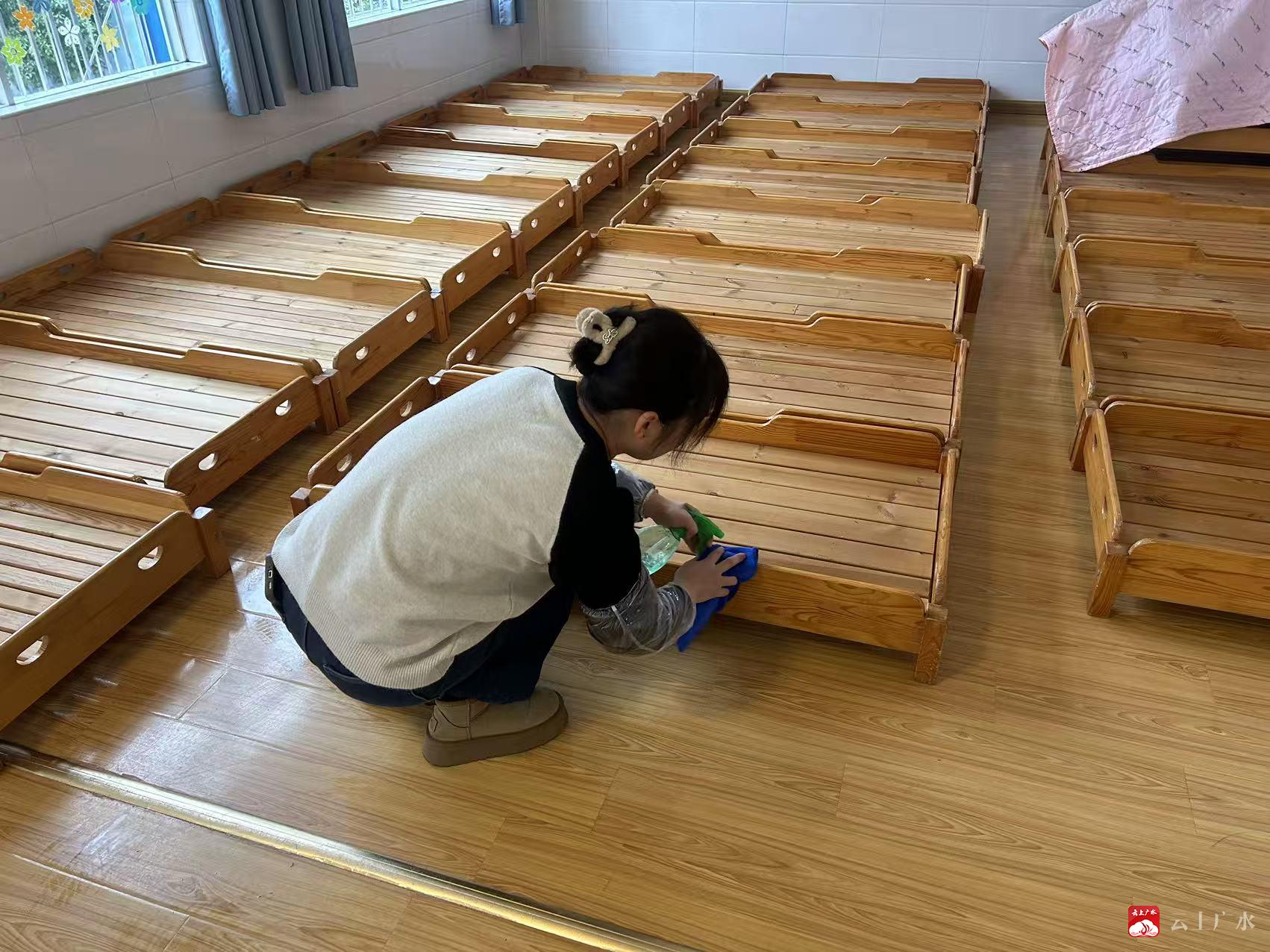 新学期将至,为筑牢校园卫生安全防线,给幼儿营造洁净、舒适、健康的成长环境,广办中心幼儿园全体教职工提前到岗,以高标准、全覆盖、无死角的要求,开展开学前清洁消毒与环境整治专项行动,用心守护幼儿健康。
