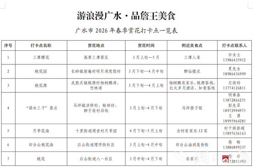 一花一叶皆风景,一步一景总关情。愿这份赏花指南,成为您邂逅广水春日的钥匙,让您在繁花间遇见美好,在乡野间感受温暖,在行走间读懂广水的自然之美、人文之韵与发展之姿。期待与您相约广水,共赏百花争艳,解锁广水的缤纷春色。