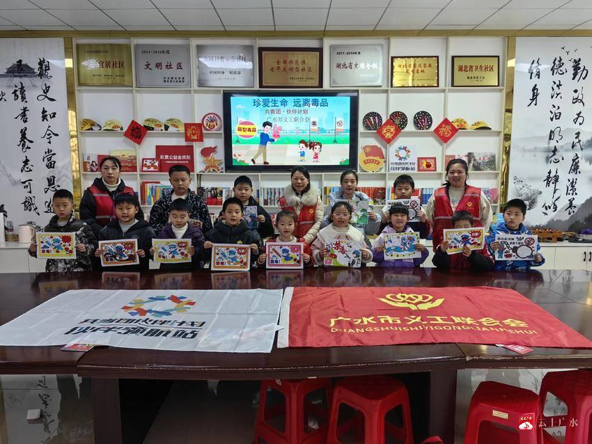 3月15日,共青团广水市委、广水市义工联合会在应山街道东关社区“共青团伙伴计划·伙伴领航站”开展以“珍爱生命•远离毒品”为主题的禁毒教育活动,让禁毒理念根植童心,提升少年儿童识毒、防毒、拒毒的意识和自我保护能力,为他们健康成长保驾护航。
