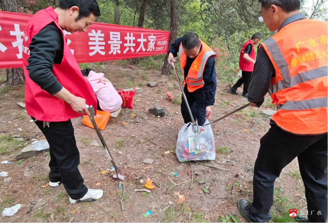 另一支志愿者队伍则以“环境守护者”的身份,手持垃圾袋、垃圾夹等工具,对山间步道、花丛深处、观景角落等区域开展“拉网式”清理。塑料袋、饮料瓶、食品包装袋等各类垃圾,无一逃过他们的视线。志愿者们弯腰捡拾的身影,穿梭在娇艳的花海中,成为春日山间一道温暖又动人的“文明风景线”。同时,志愿者们还向游客发放文明旅游倡议书,呼吁大家“带走垃圾、留下美景”,共同维护山林整洁,让生态保护意识融入每一位游客的行动中。