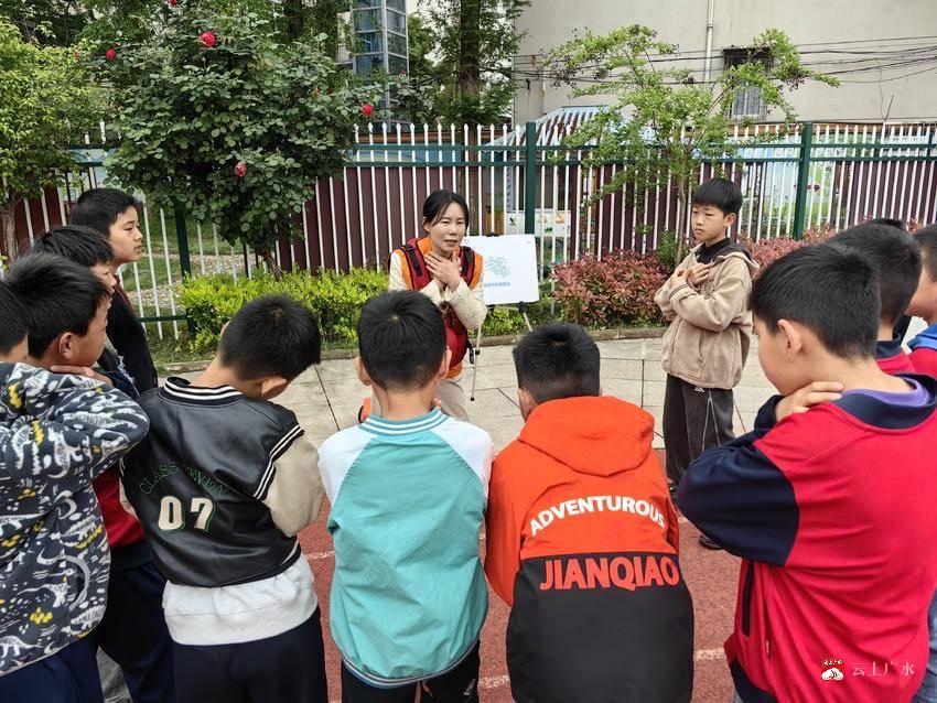四(一)班的李浩铭说:“今天参加了腹部冲击急救法,还学了绳结急救法,这样的闯关真有意思。”“我学会了AED的使用方法,以后如果有人晕倒,我就会赶快就近去找AED,它的语音提示会指导我们怎么救人。五(一)班的匡夏语学会后特别自豪。
