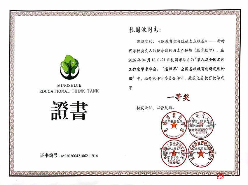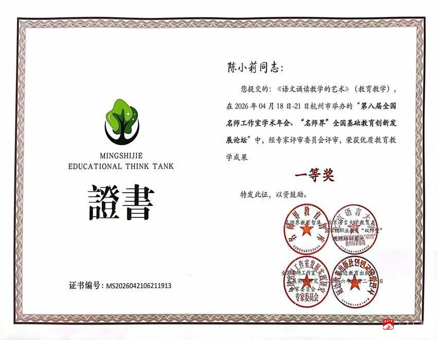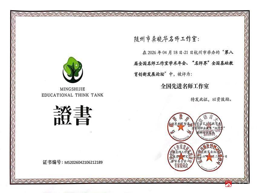 4月18日至21日,第八届全国名师工作室学术年会暨全国基础教育创新发展论坛在杭州隆重举办。全国各地教育专家、名师代表齐聚一堂,共研育人新思路,共探教研新方向。随州市龚晓华名师工作室核心成员应邀赴会学习交流,满载收获,捷报频传。