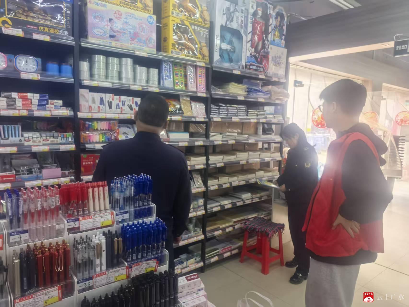 此次专项行动,检查组重点排查学校周边超市、文具店、小卖部等重点经营场所,累计排查各类经营户5家,仅发现1个轻微问题,现场已指导整改到位。在超市以及文具店,工作人员一方面仔细查看货架上的文具等商品,排查是否存在销售淫秽色情、暴力恐怖、低俗有害等非法出版物或文化产品的情况,同时对商品进货渠道进行核验,要求超市负责人严格把控商品质量关,严防不良书籍流入校园,杜绝不良文化产品流入市场,守护青少年身心健康。另一方面同步开展安全隐患排查,重点检查消防设施配备、用电用气安全、疏散通道畅通等情况,及时排查整改安全隐患,防范安全事故发生。